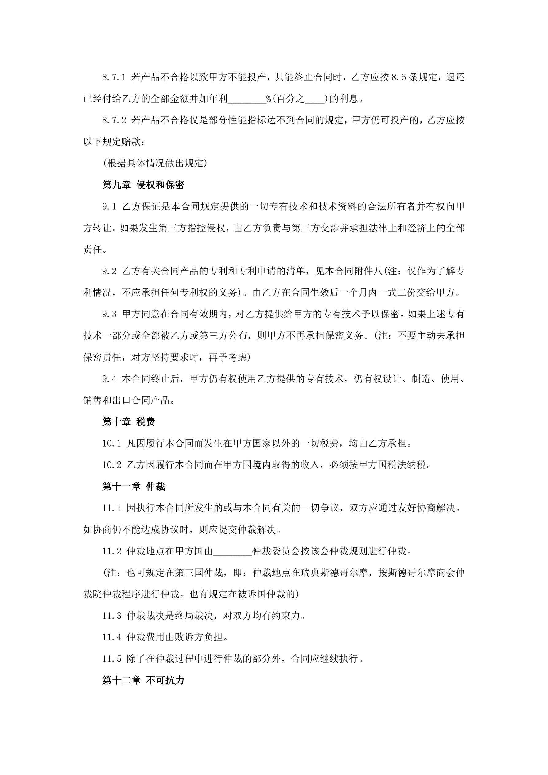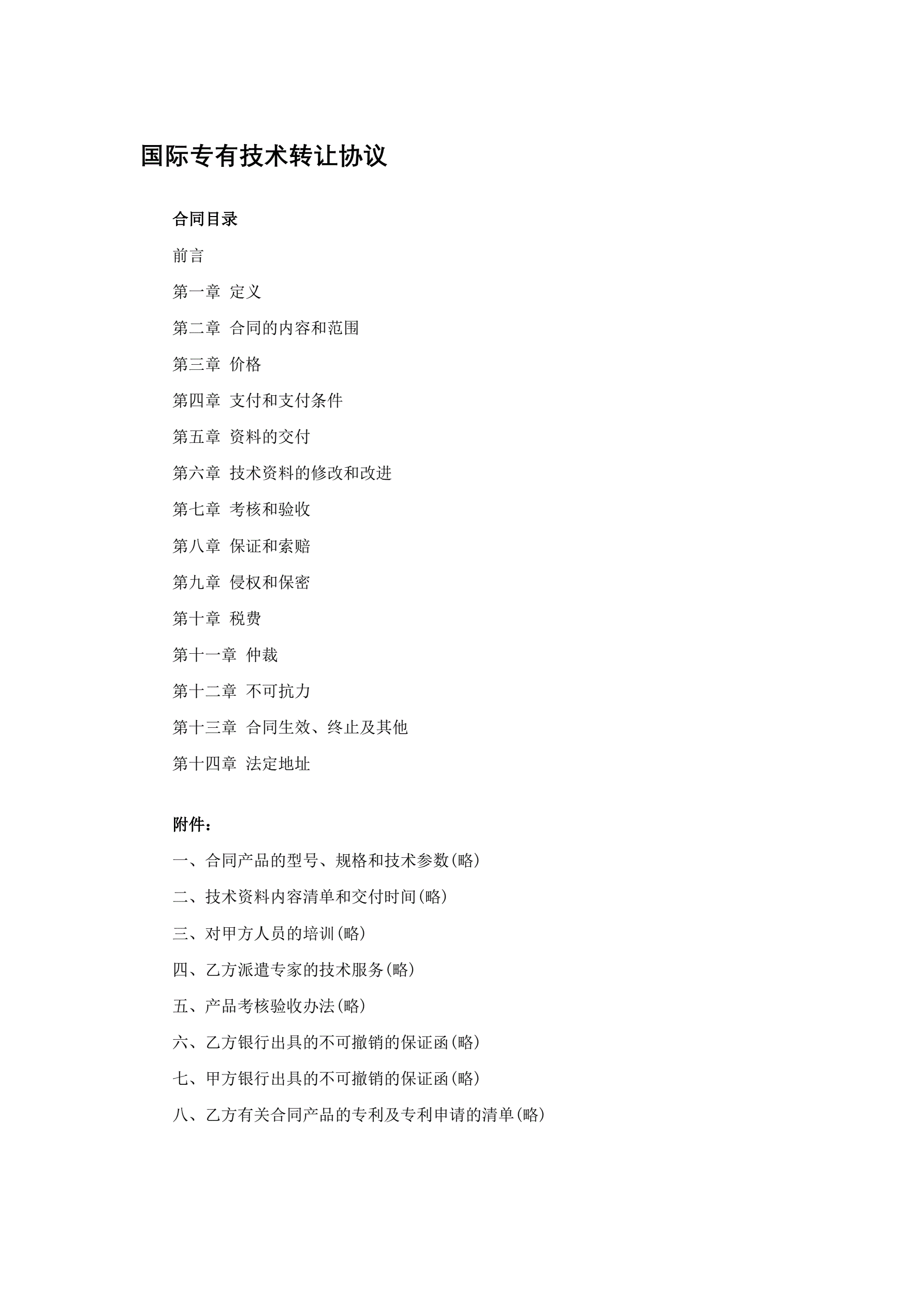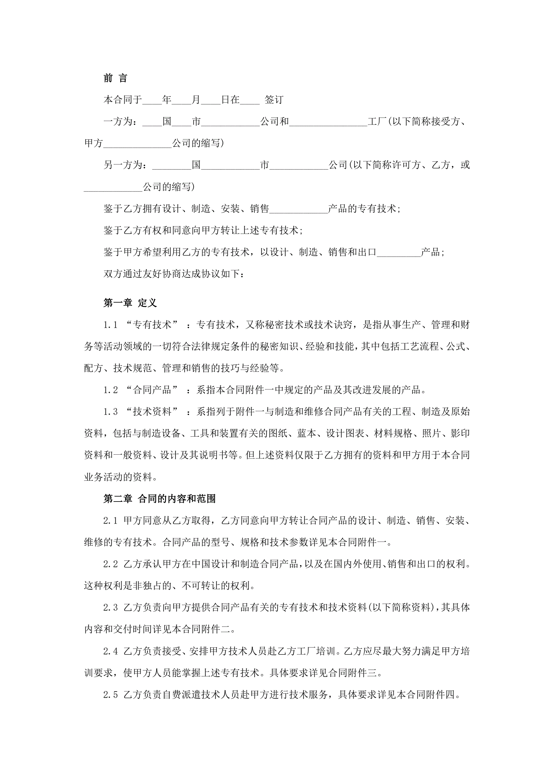 国际专有技术转让协议