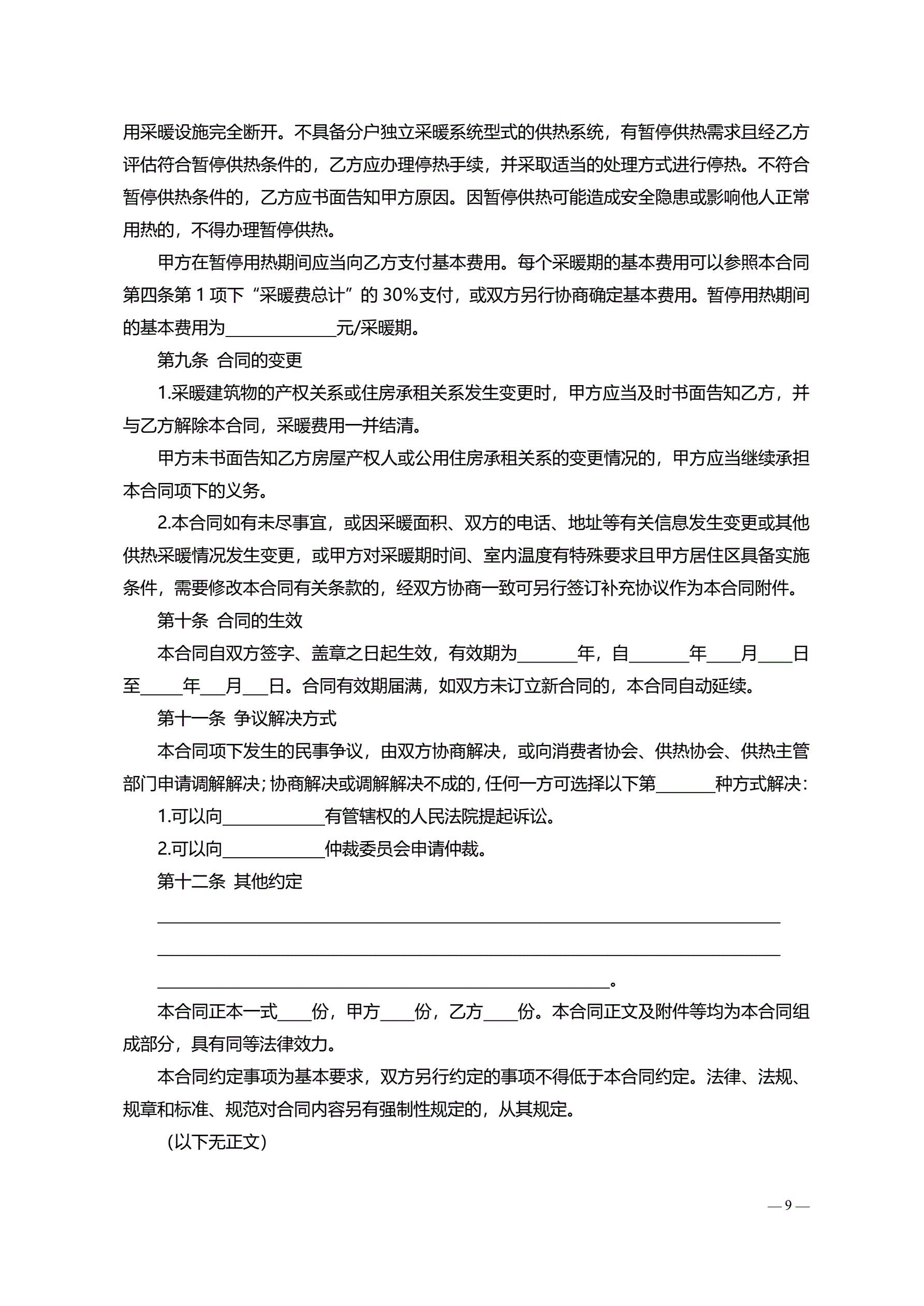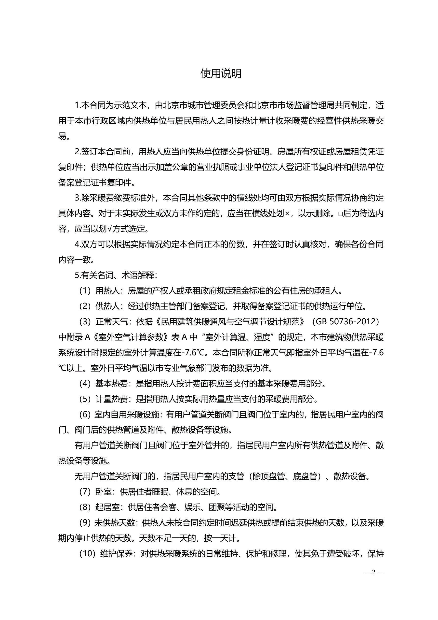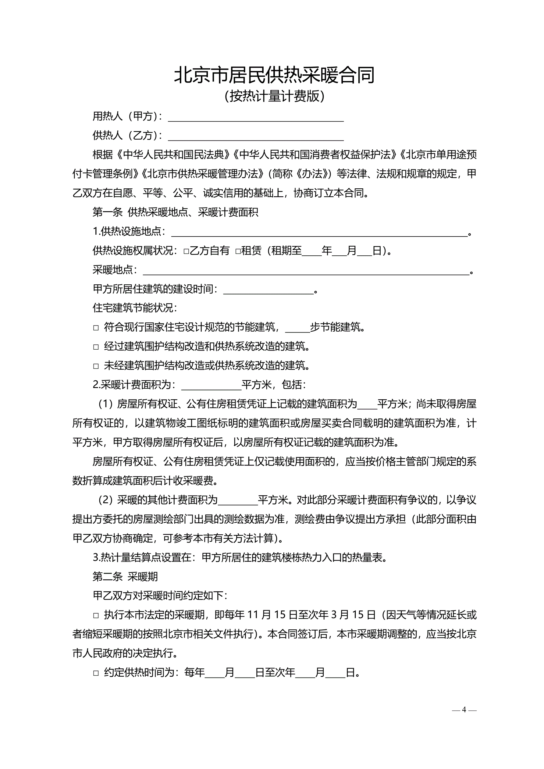 >北京市居民供热采暖合同(按热计量计费版)