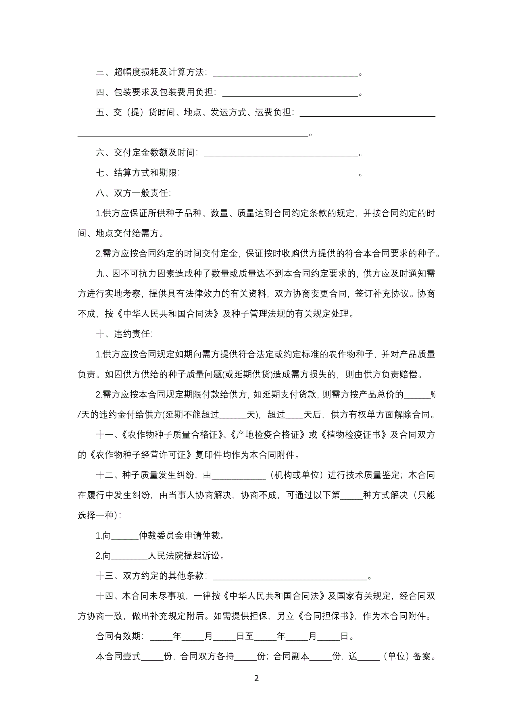 合同名称:农作物种子购销合同