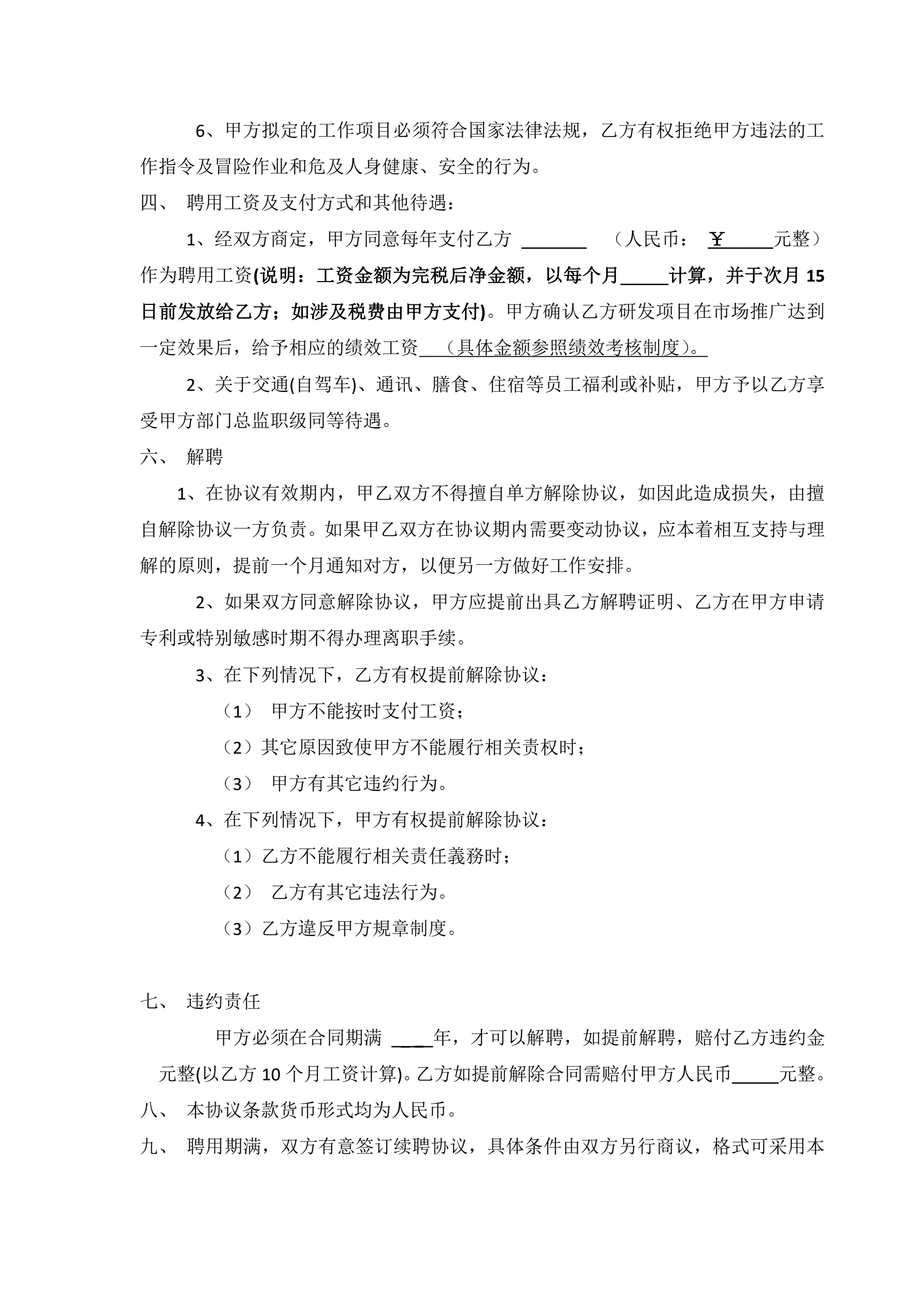 >研发项目聘用协议(修订本)