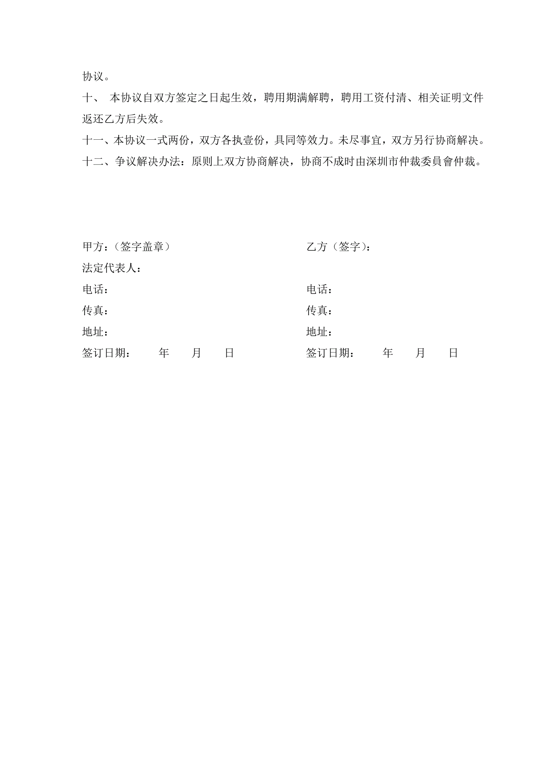 聘用合同