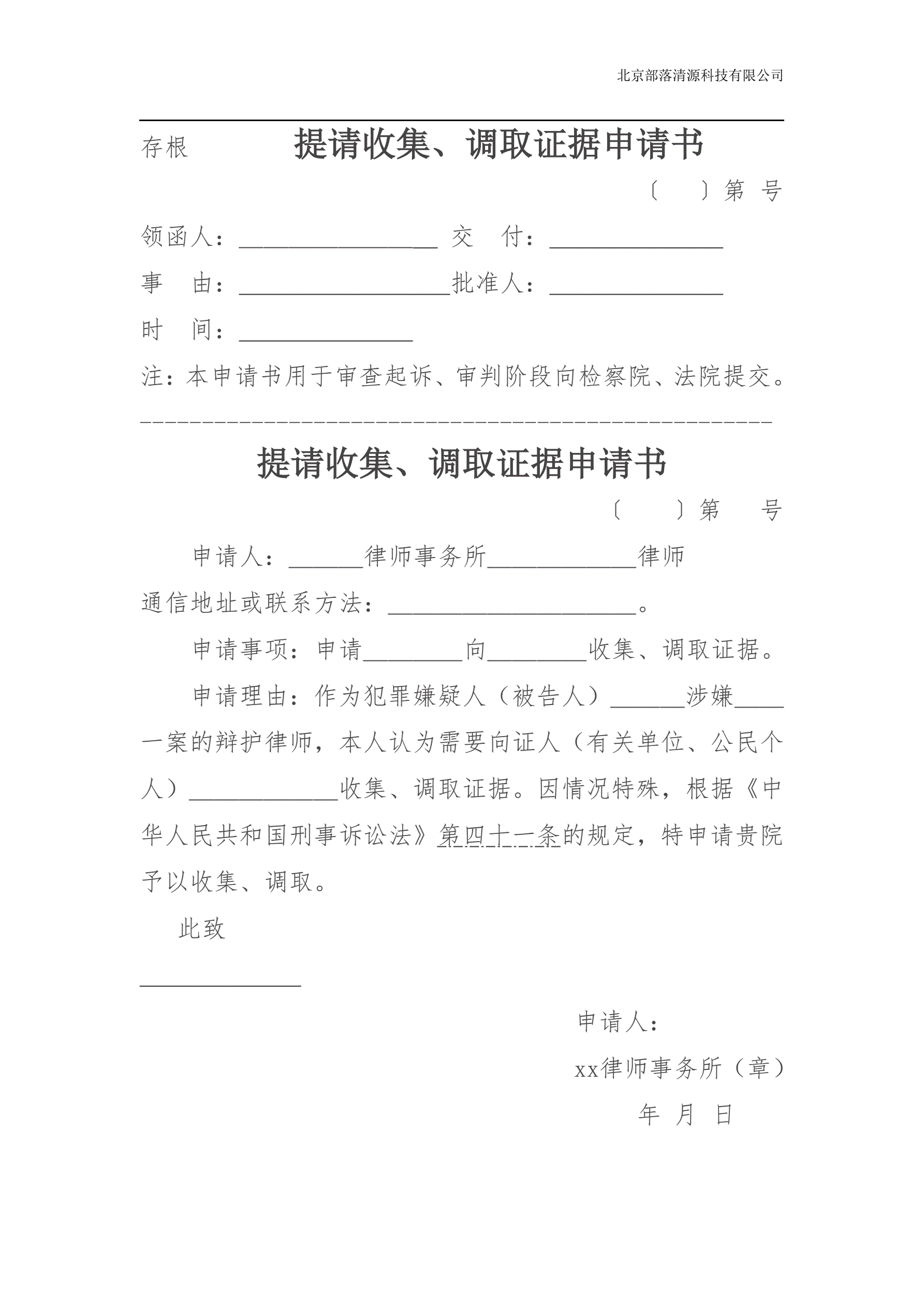 (证人)提请收集、调取证据申请书