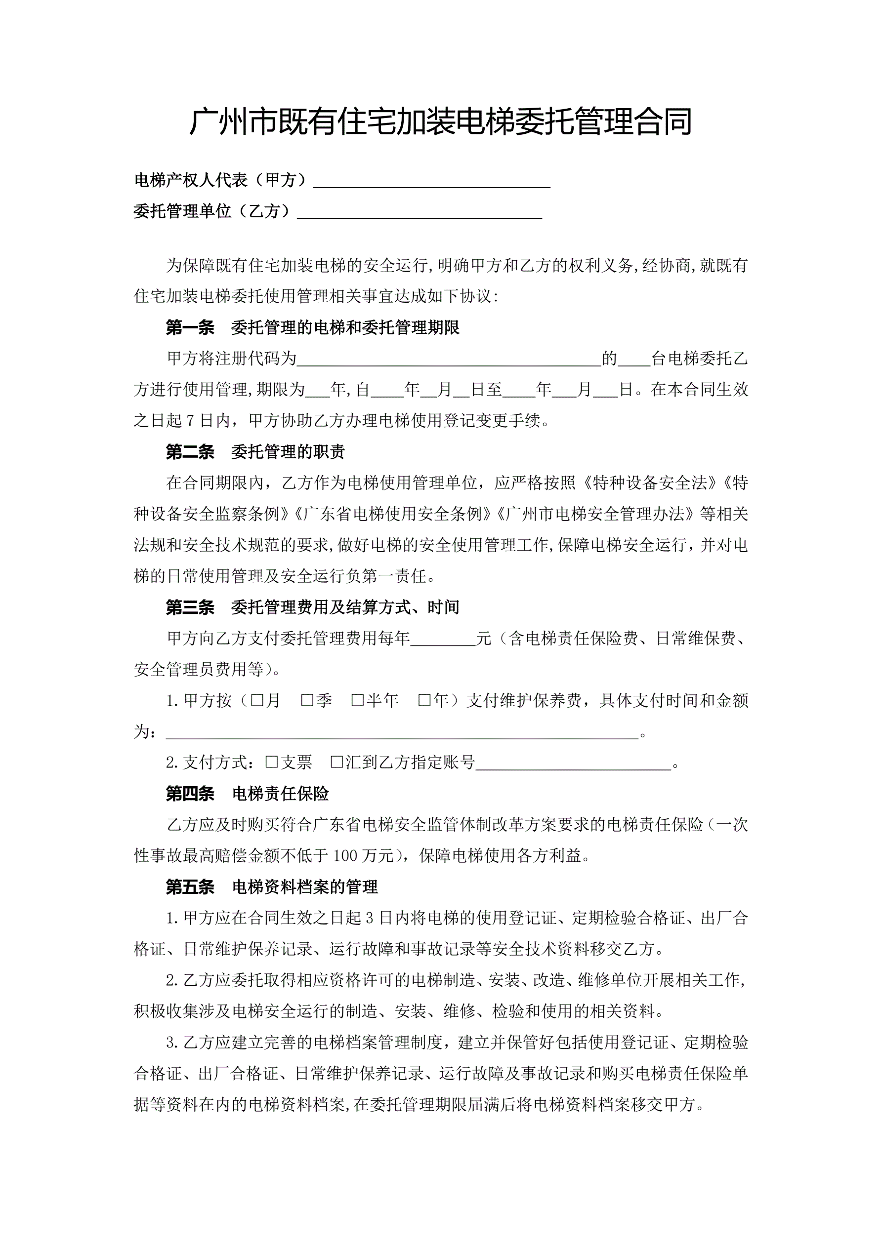 20210301:《广州市既有住宅加装电梯委托管理合同》示范文本(定)