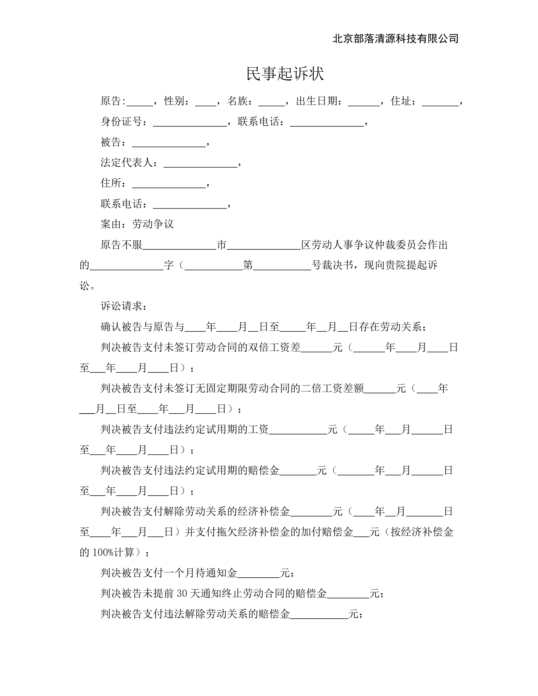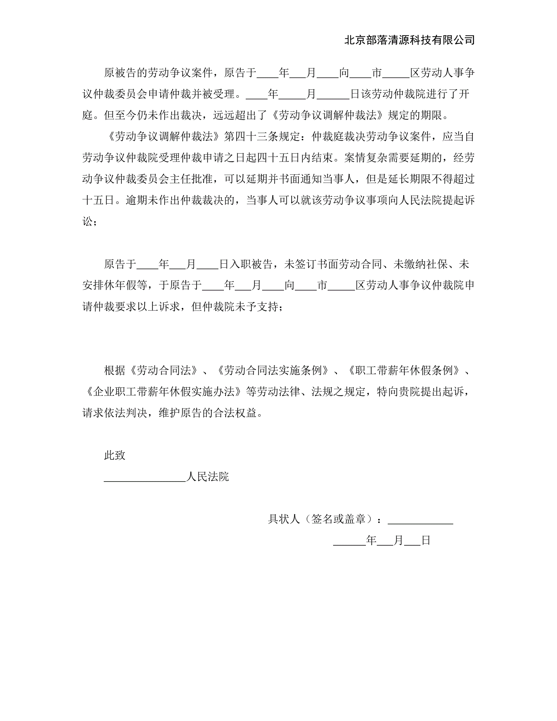 >民事起诉状(不服劳动争议裁决)
