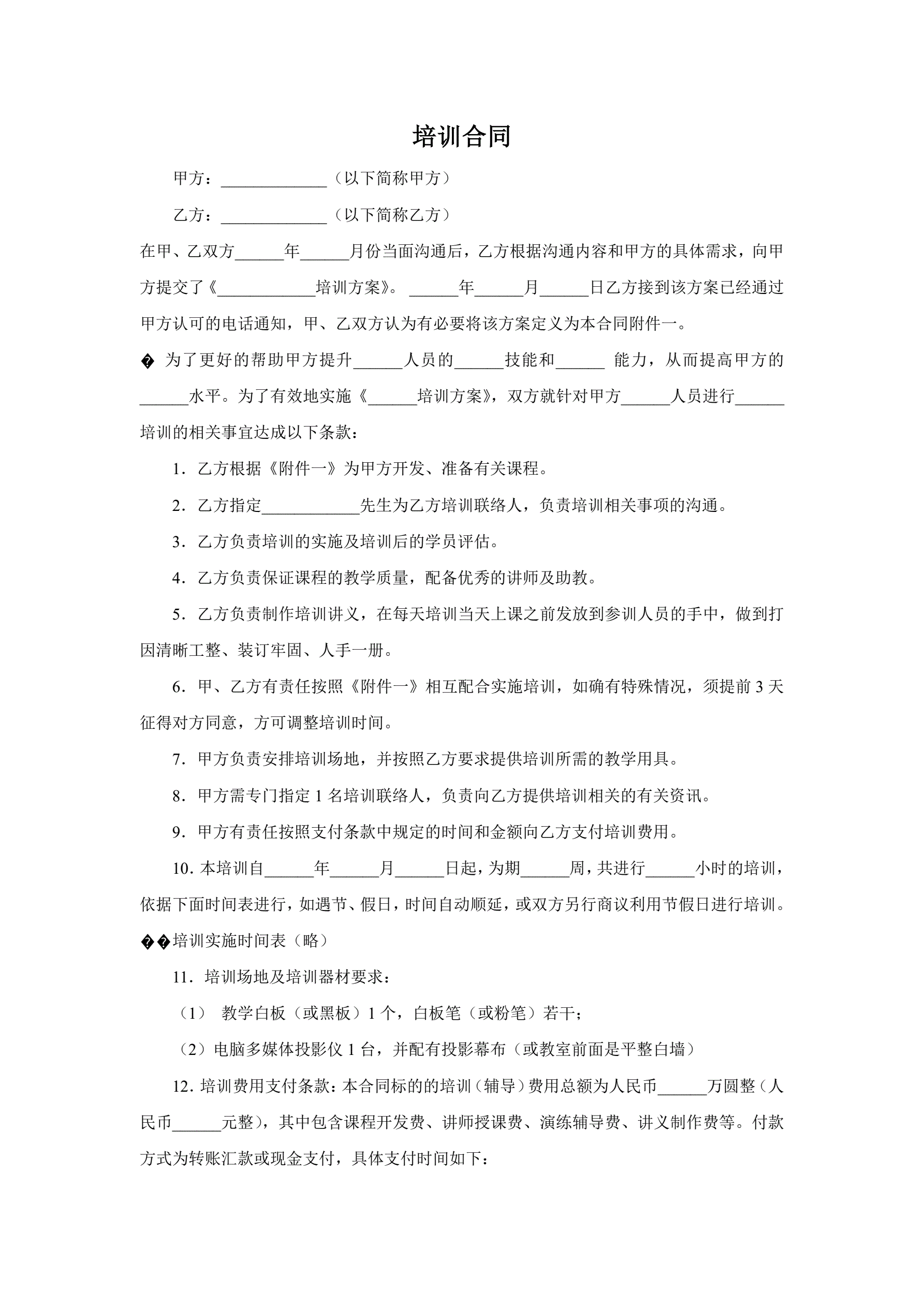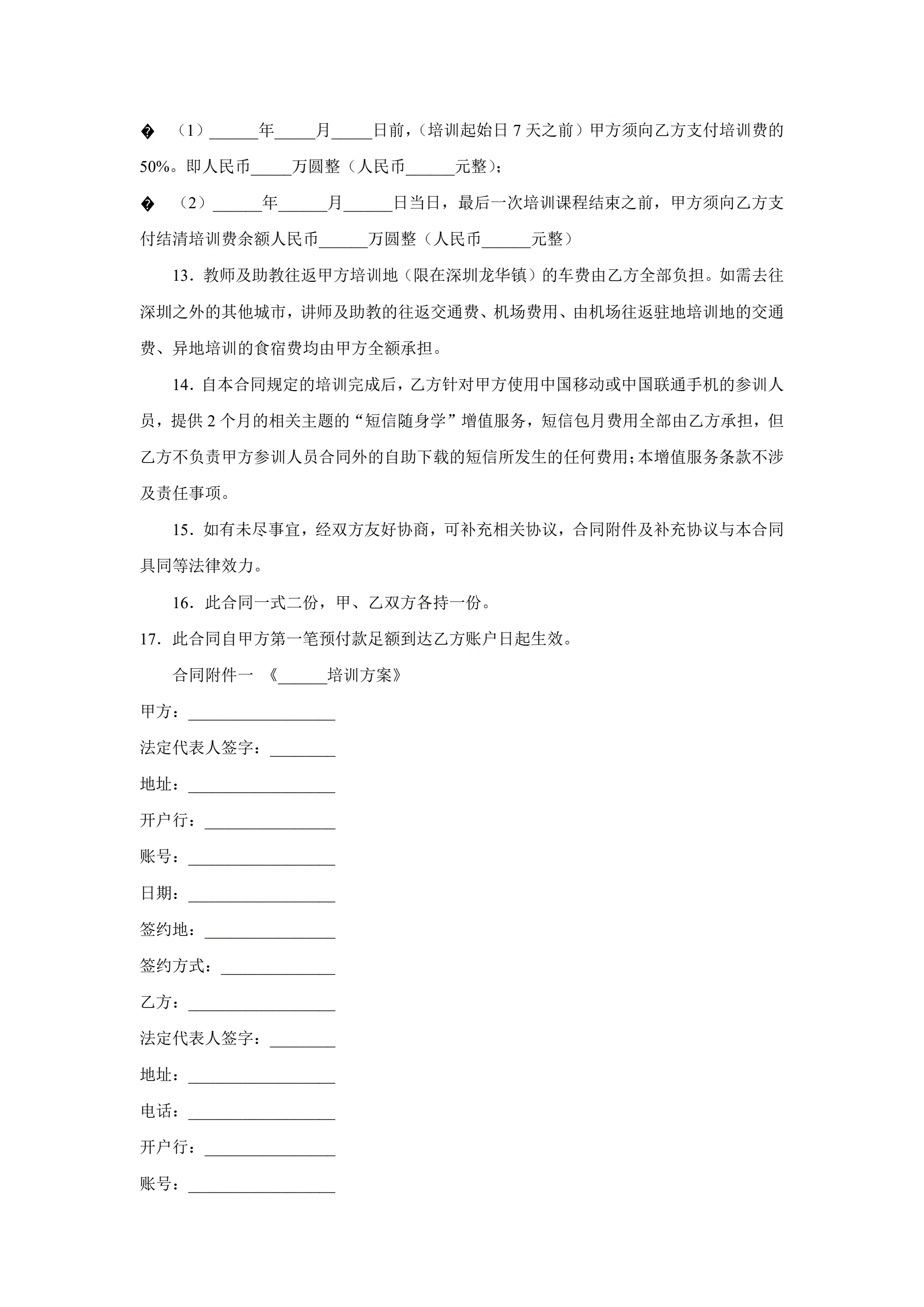 >培训合同