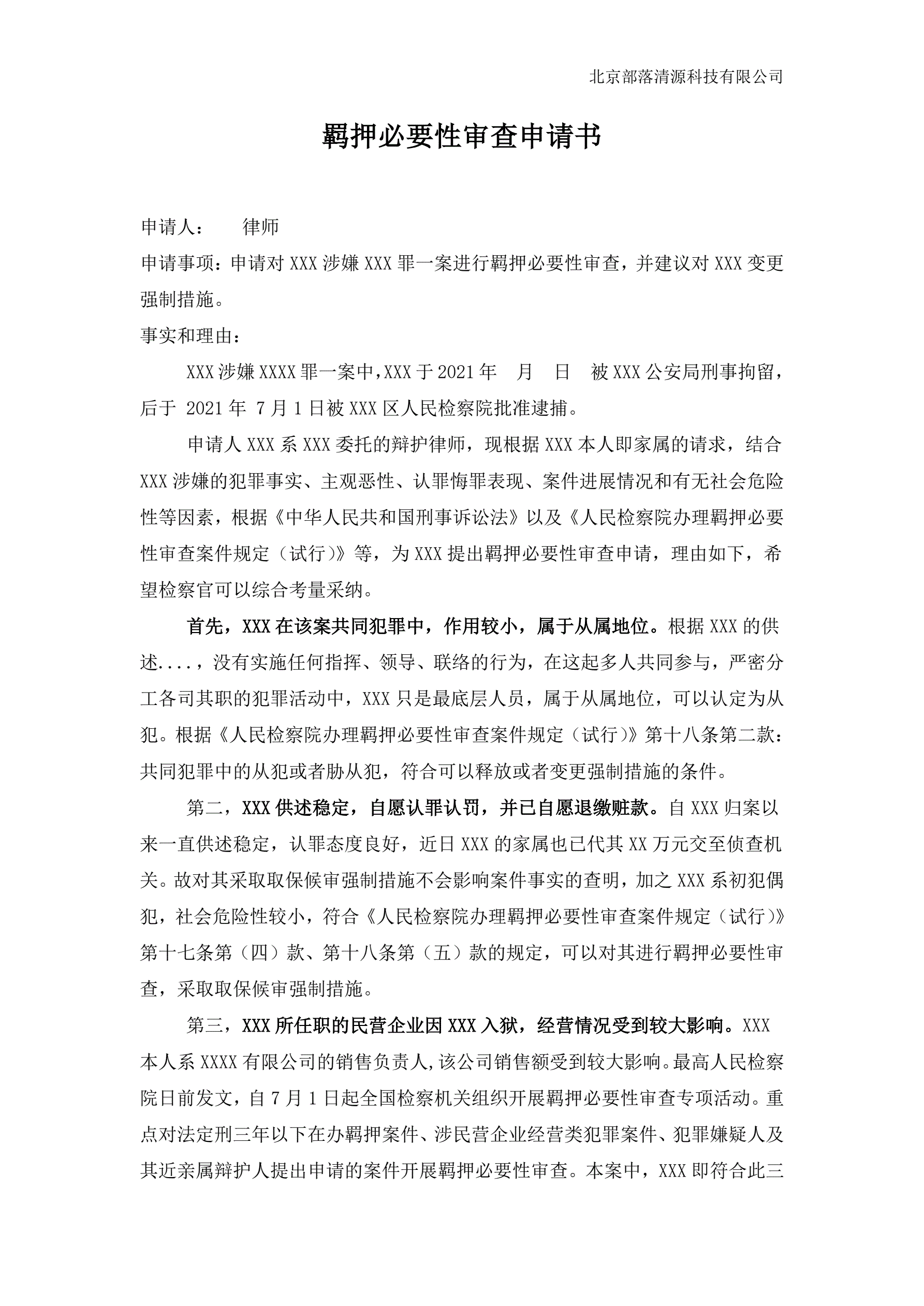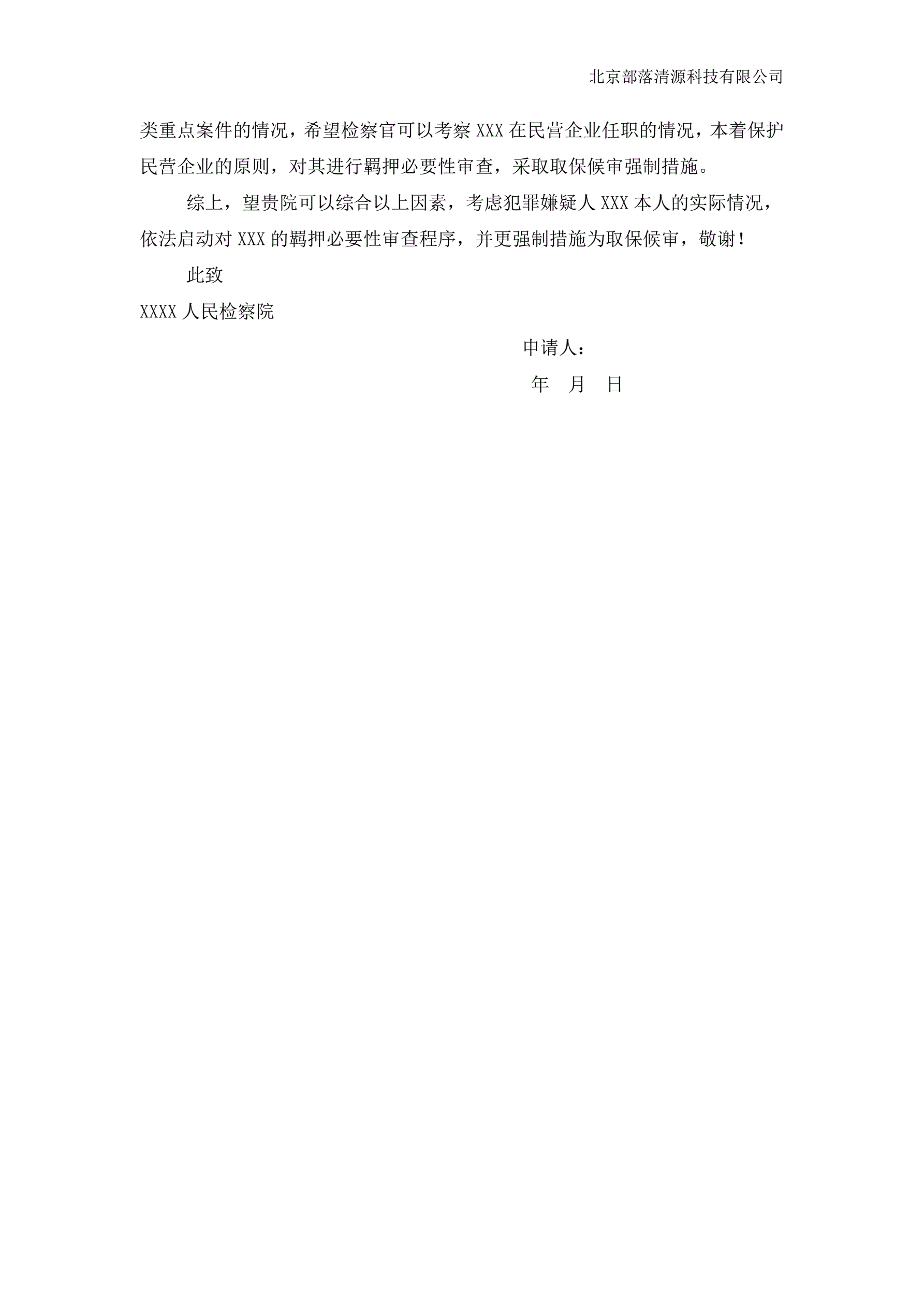 >羁押必要性审查申请书范本