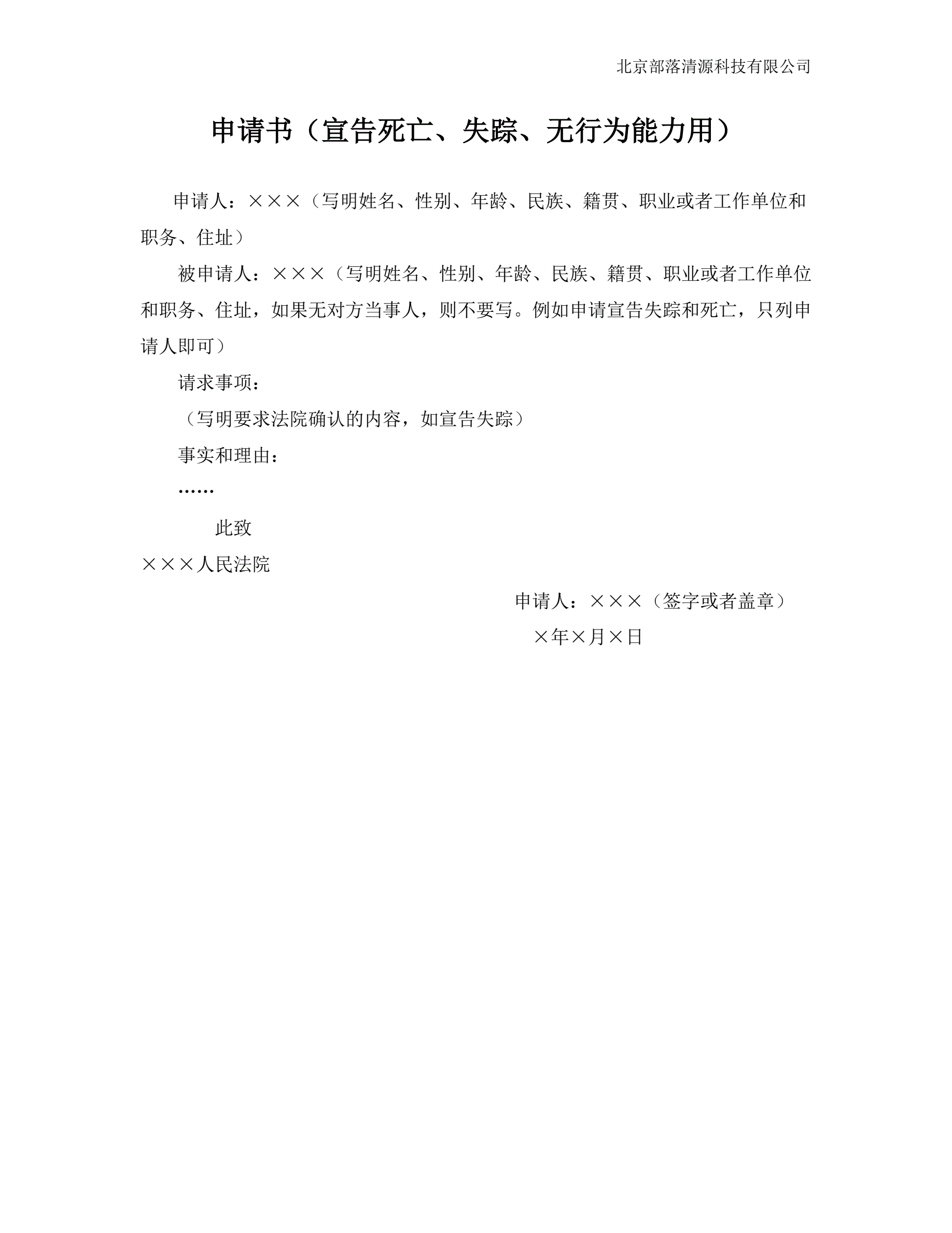>申请书(宣告死亡、失踪、无行为能力用)