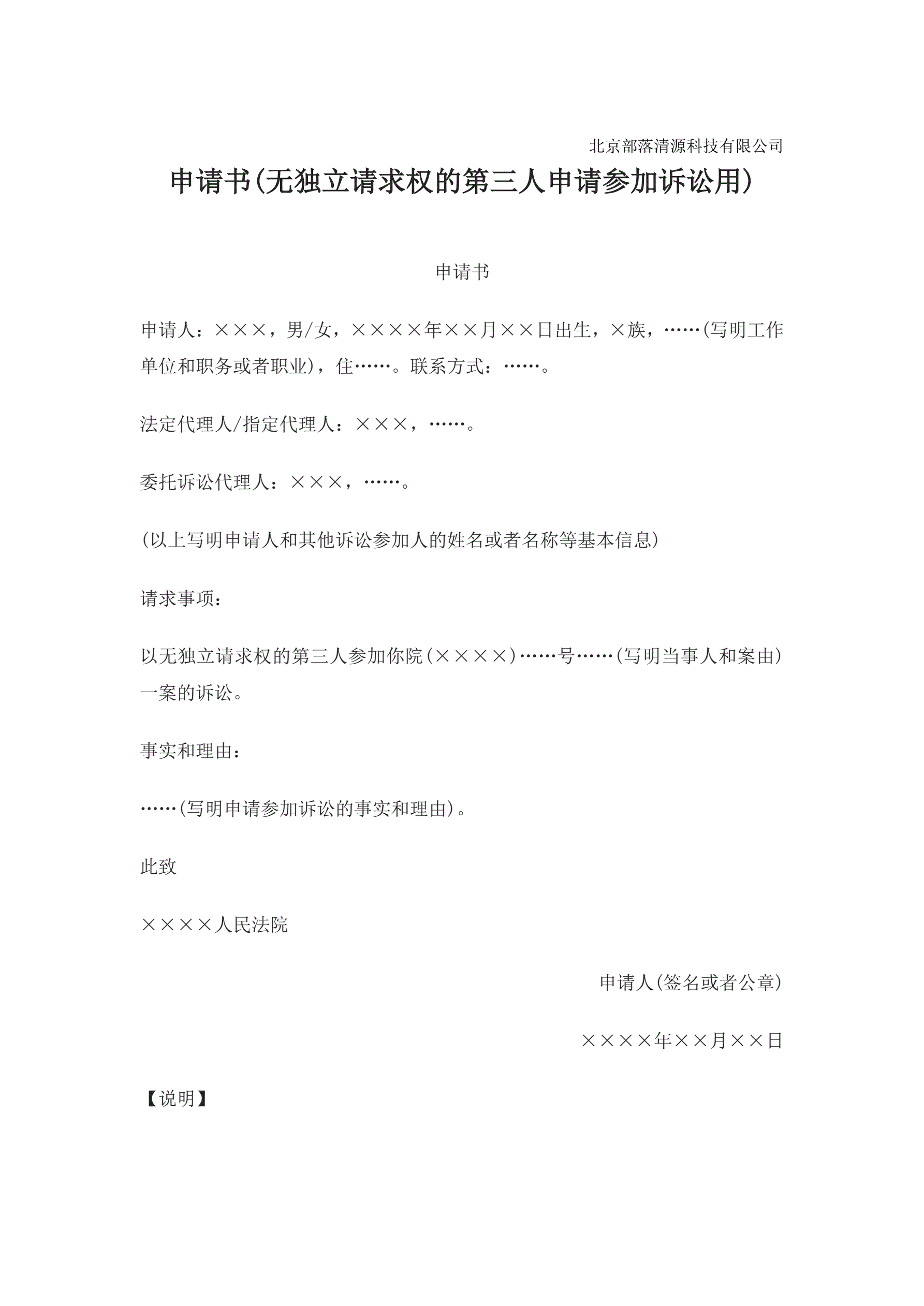 >申请书(无独立请求权的第三人申请参加诉讼用)