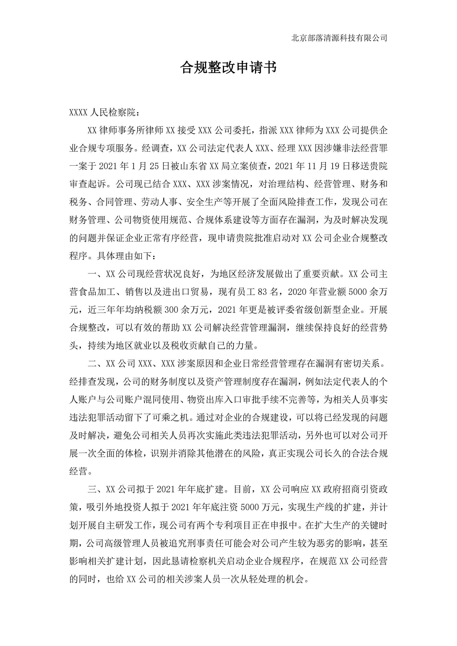 >合规申请书范本