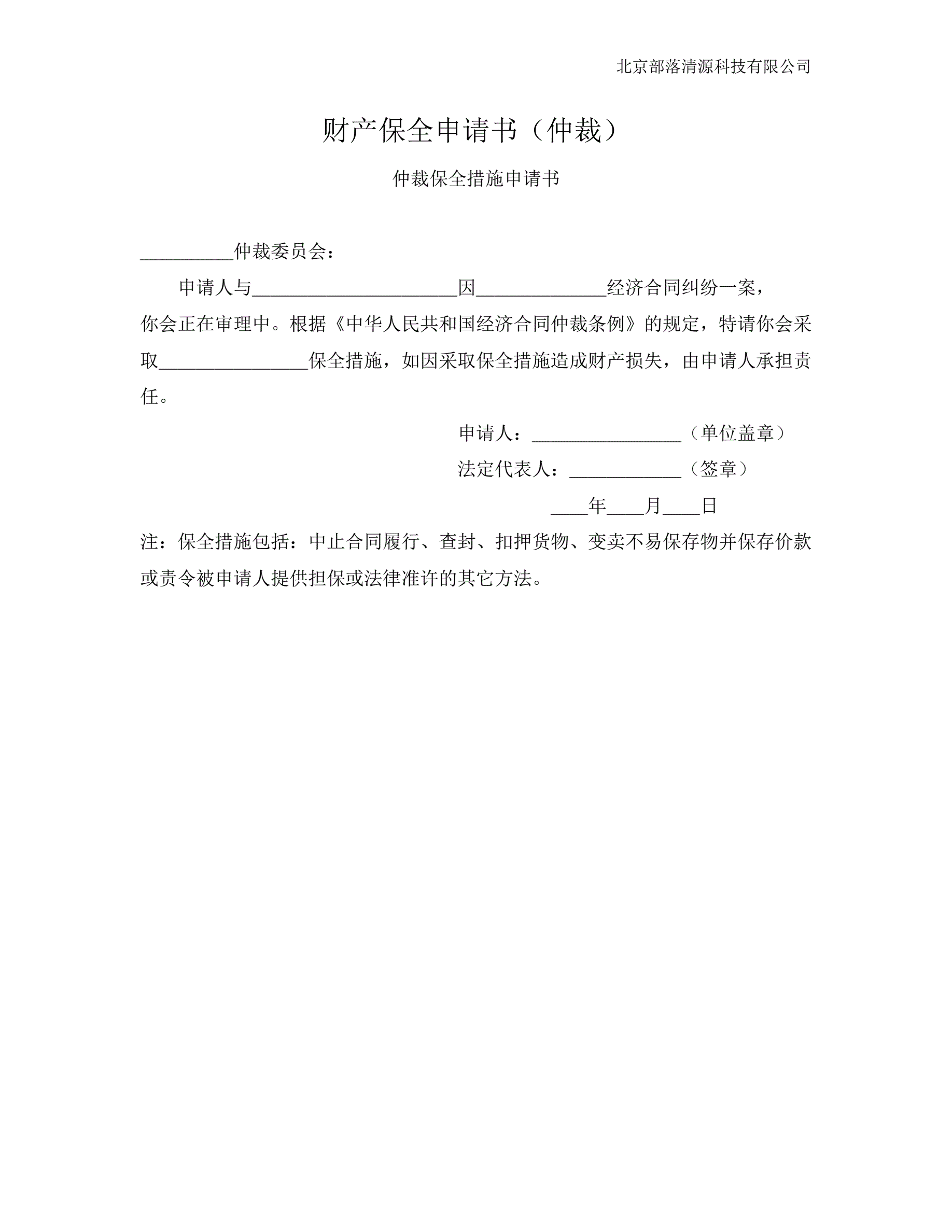 >财产保全申请书仲裁版