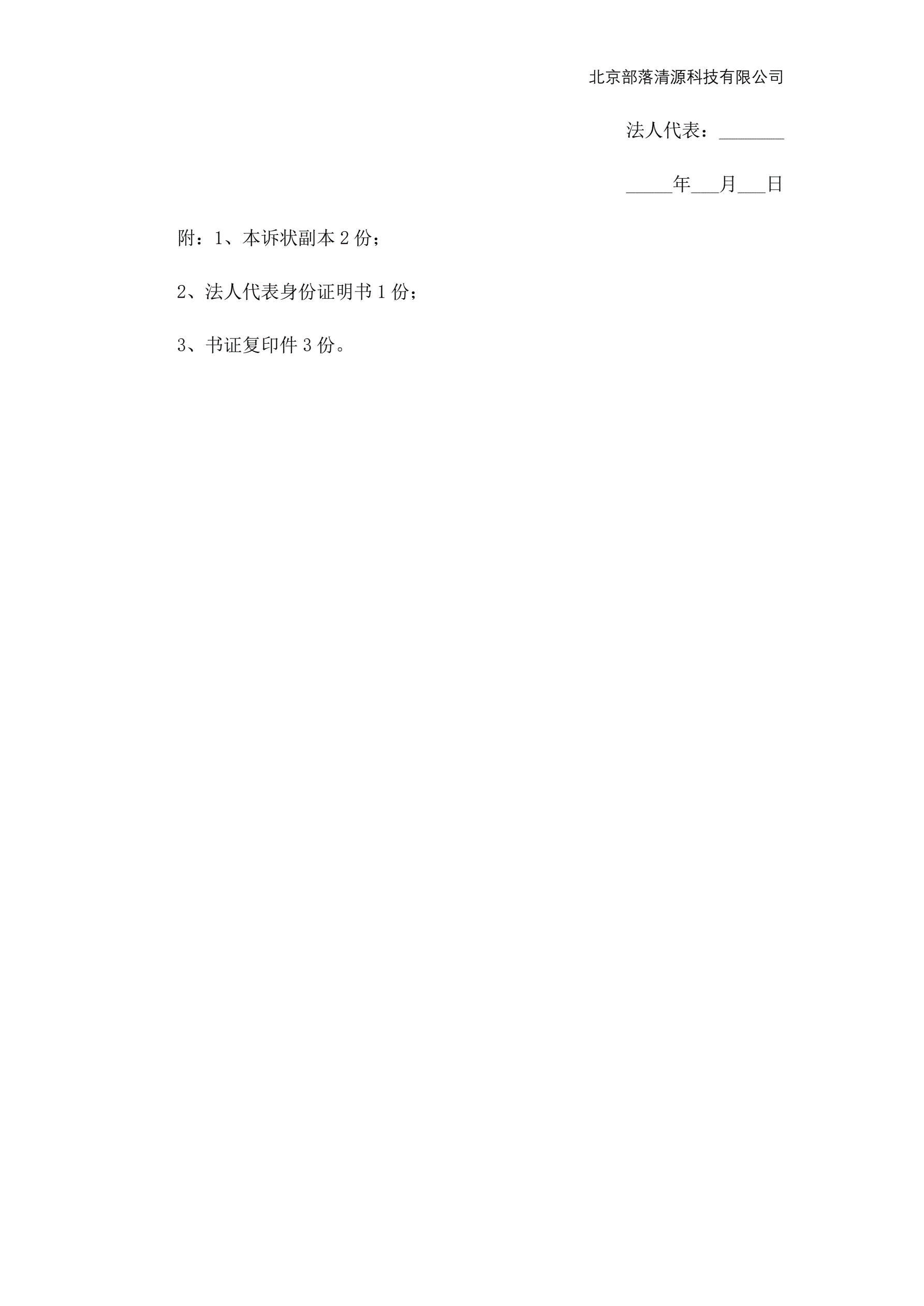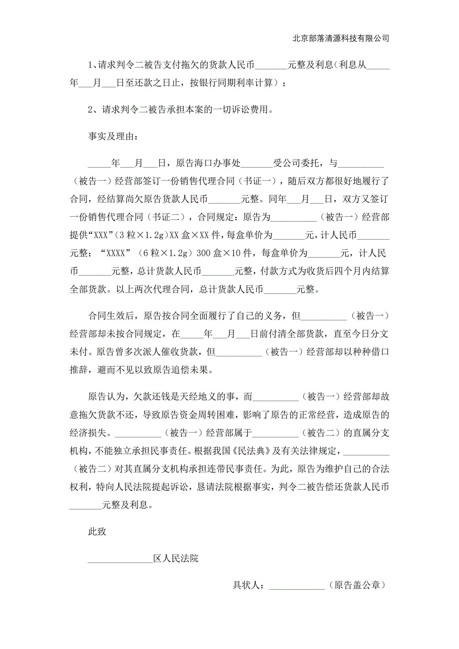 >法人(民事)起诉状范本