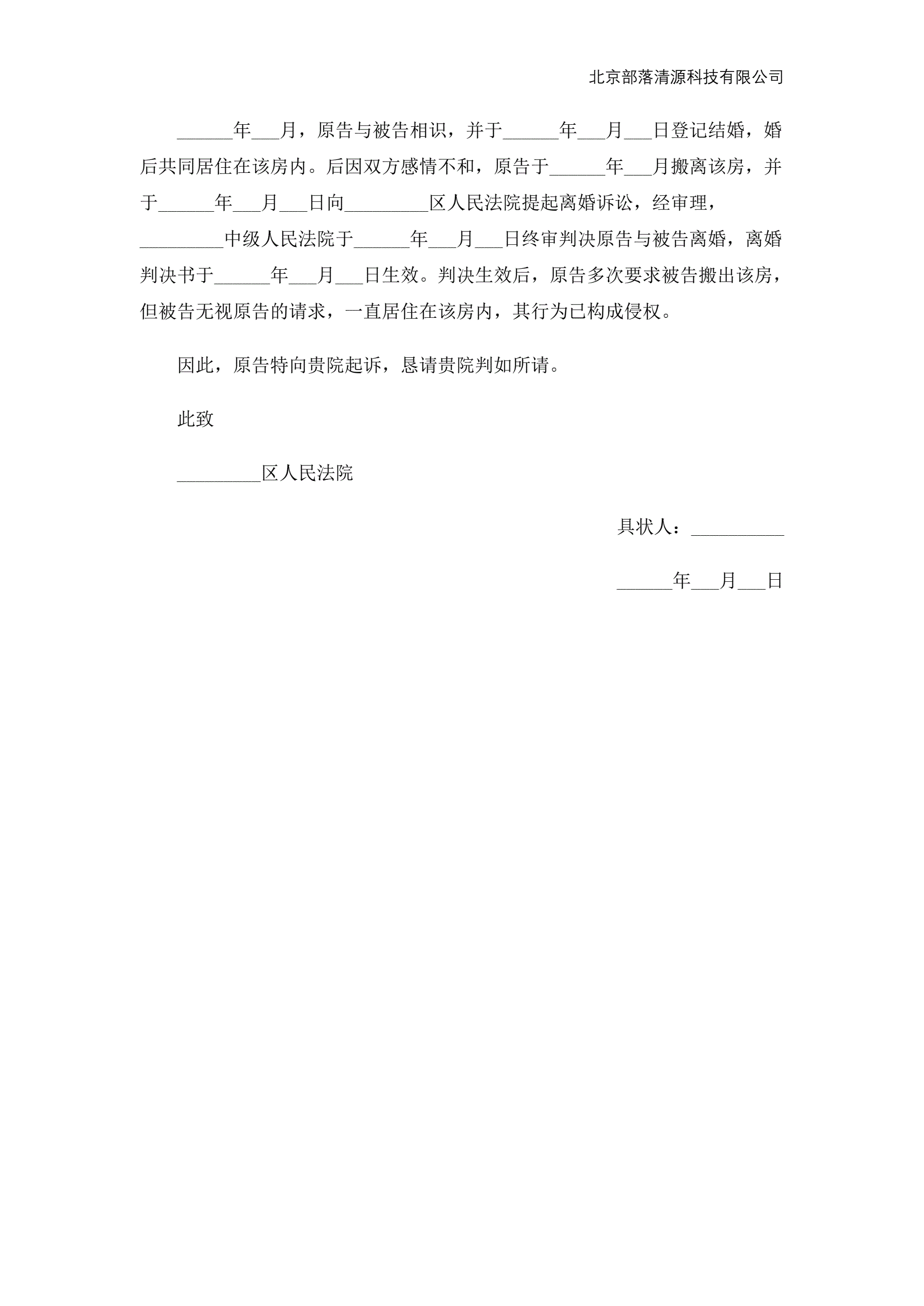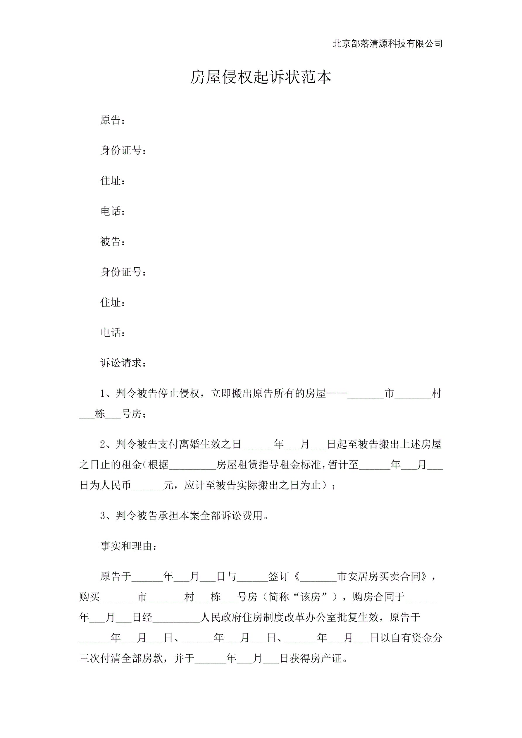 房屋侵权起诉状范本