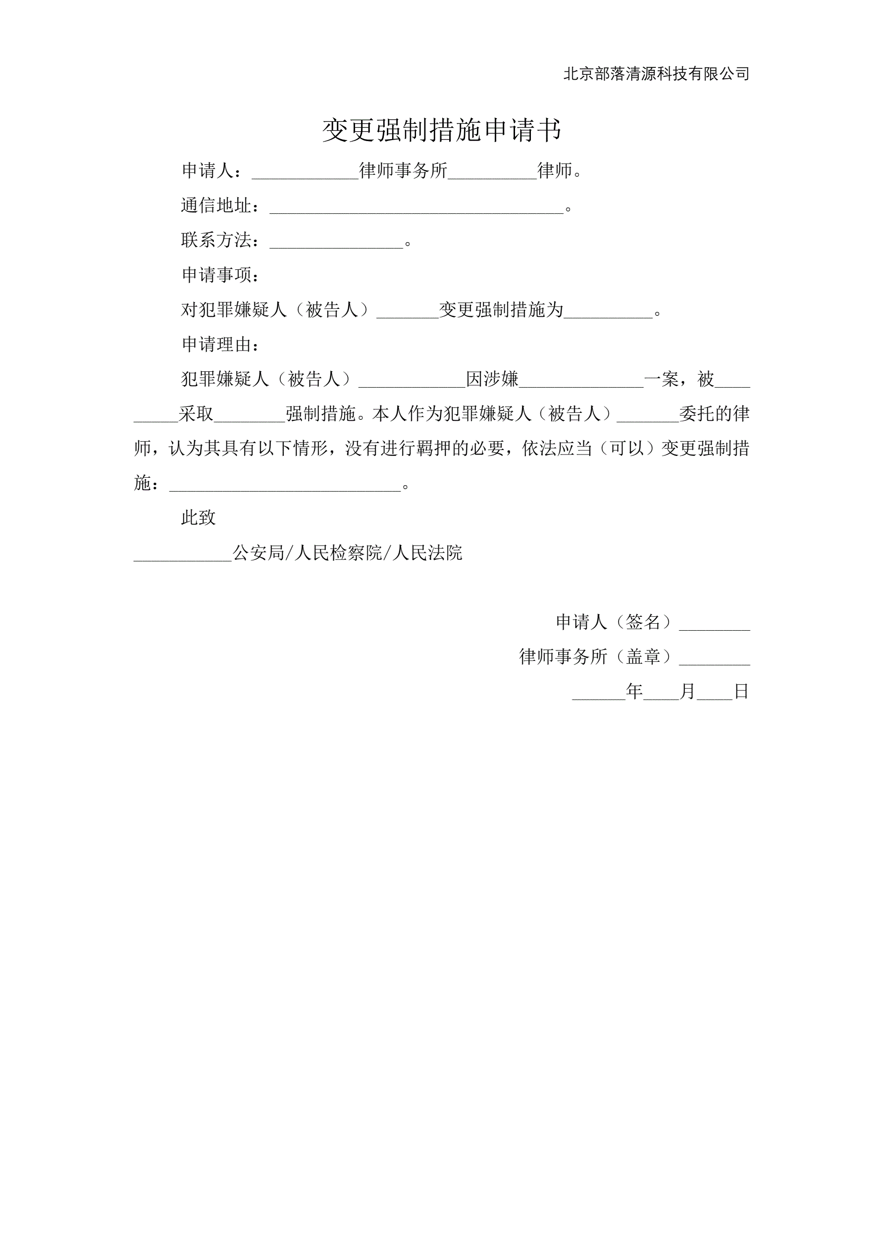 >变更强制措施申请书