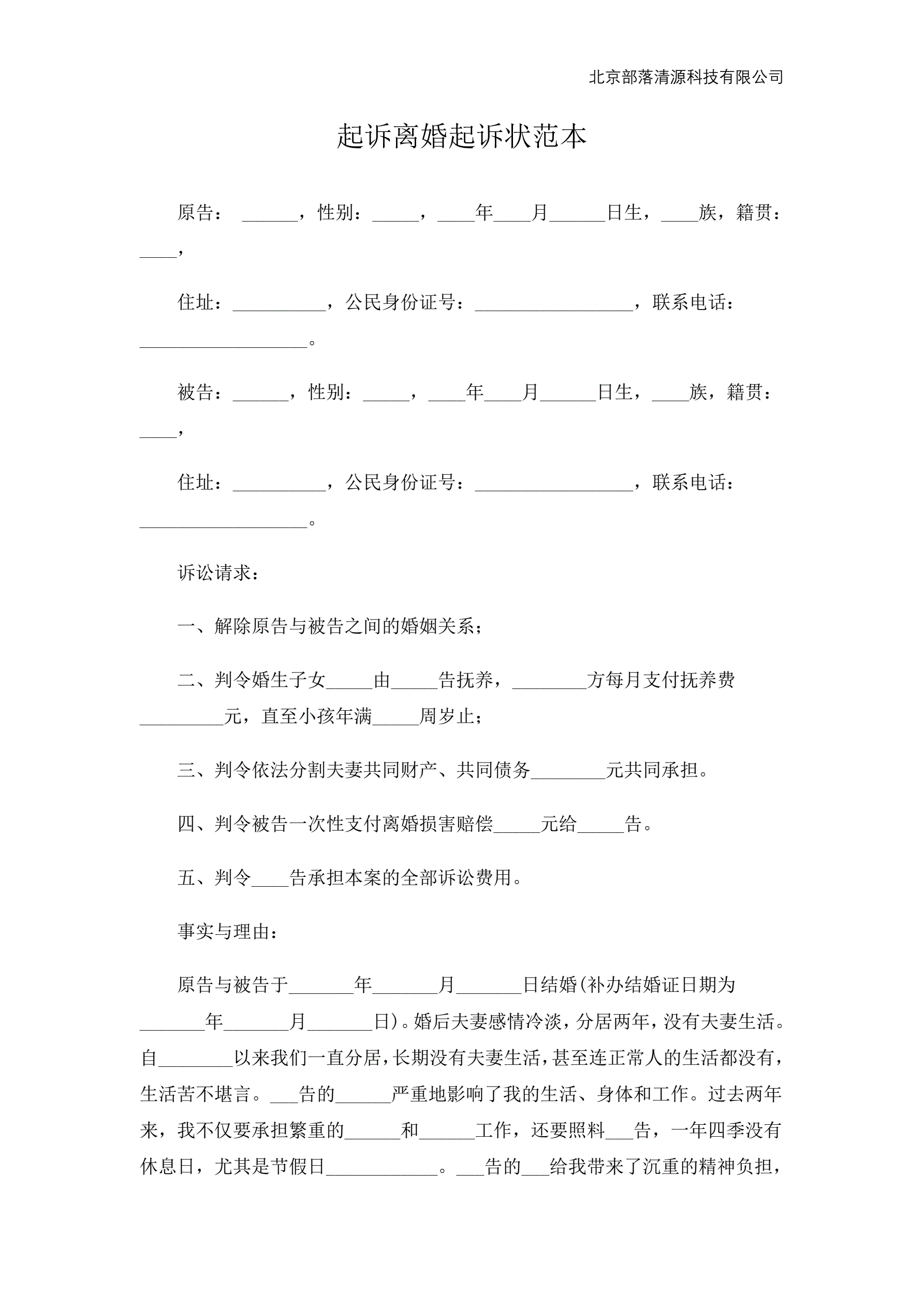 >起诉离婚起诉状范本