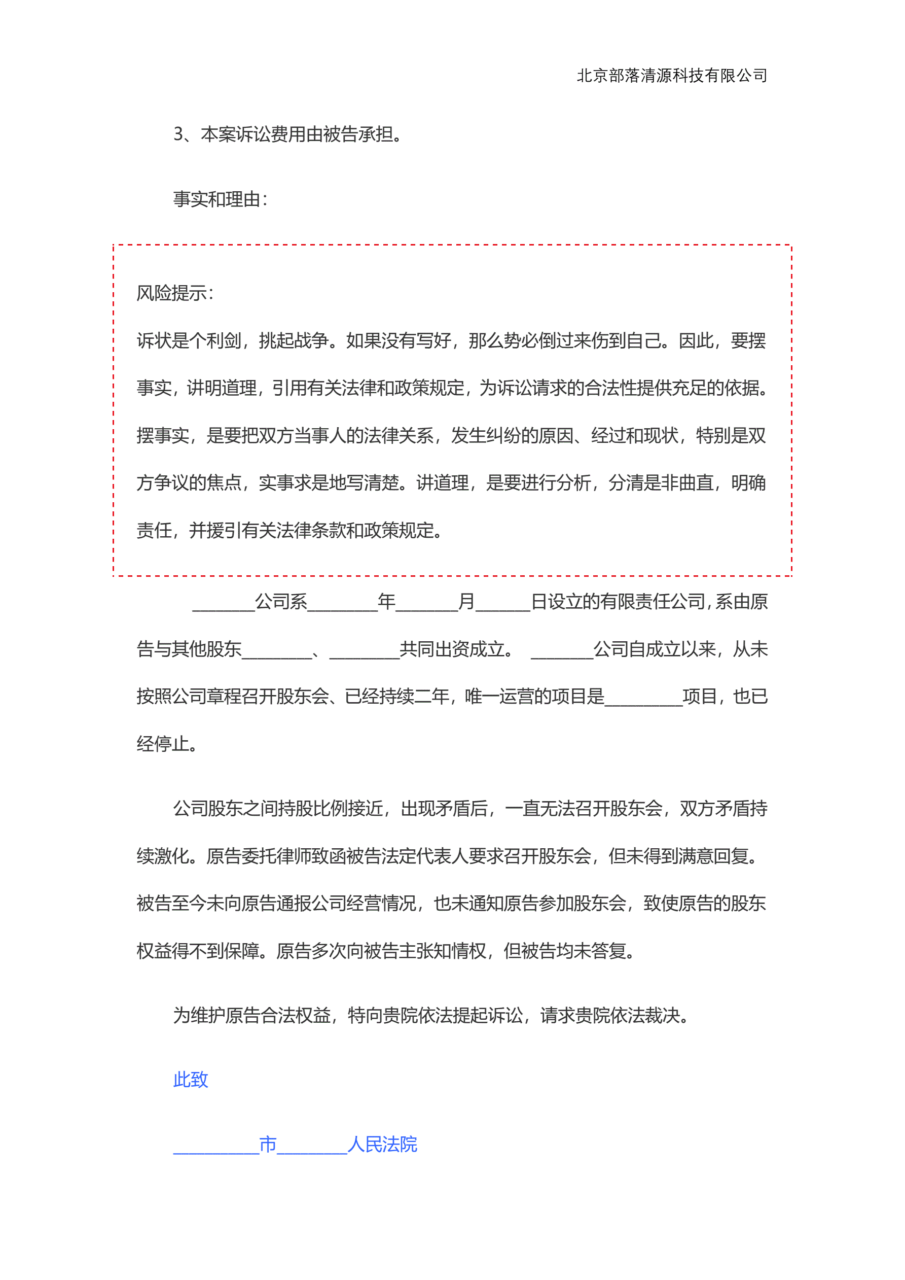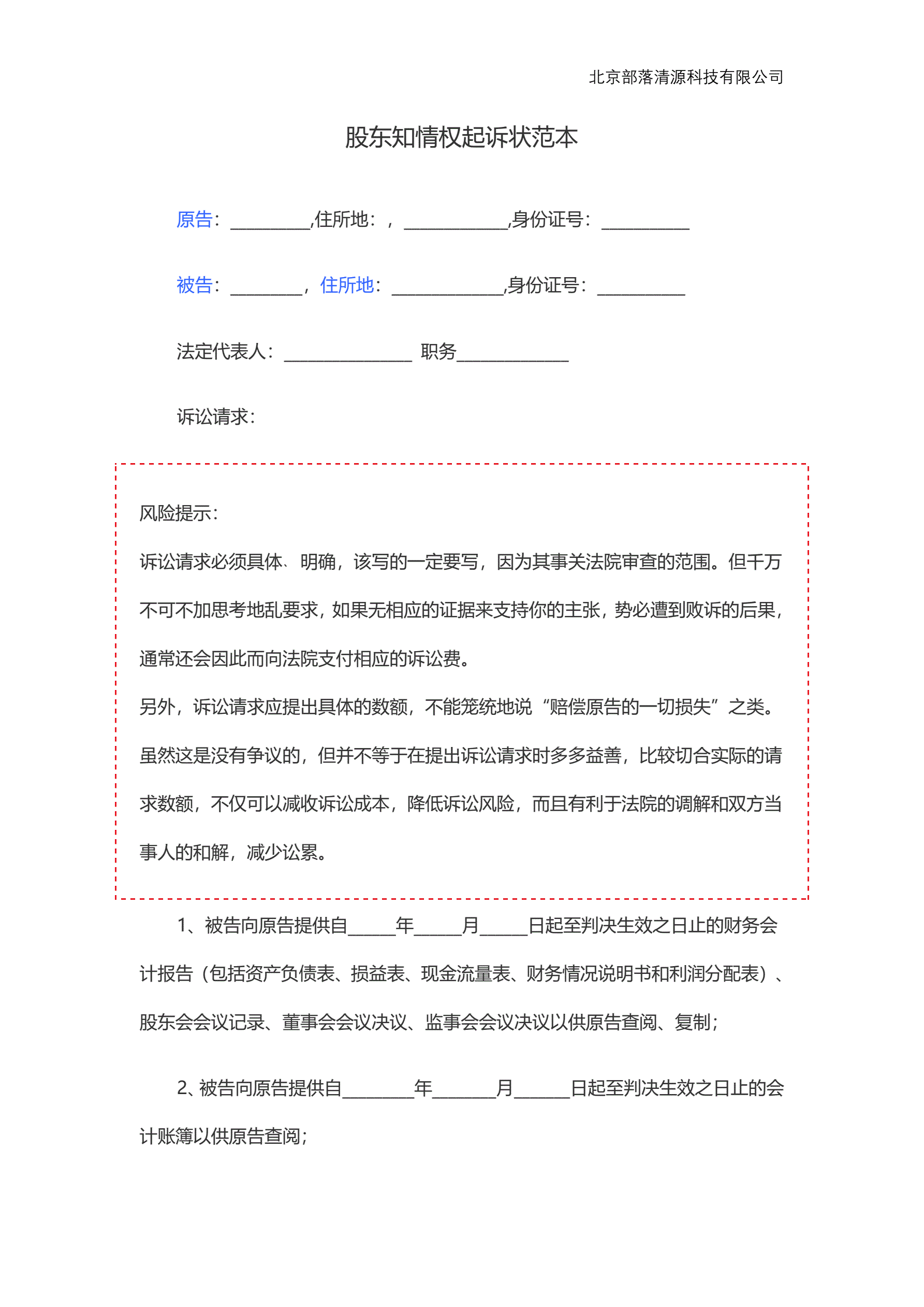 >股东知情权起诉状范本