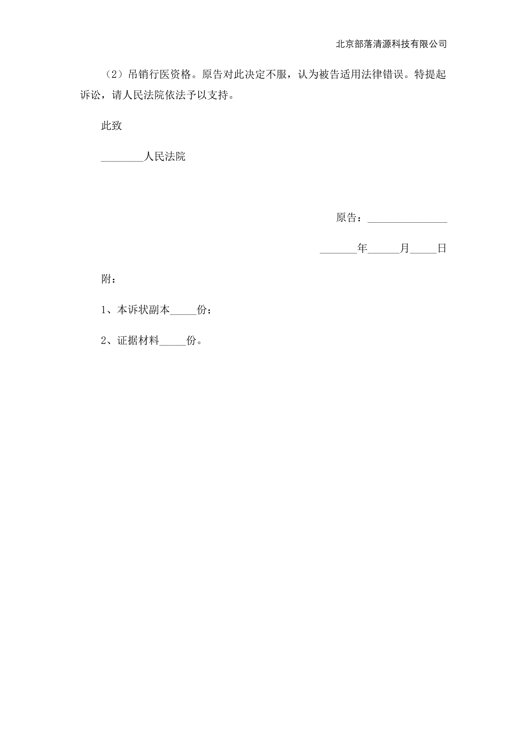 行政起诉状范本