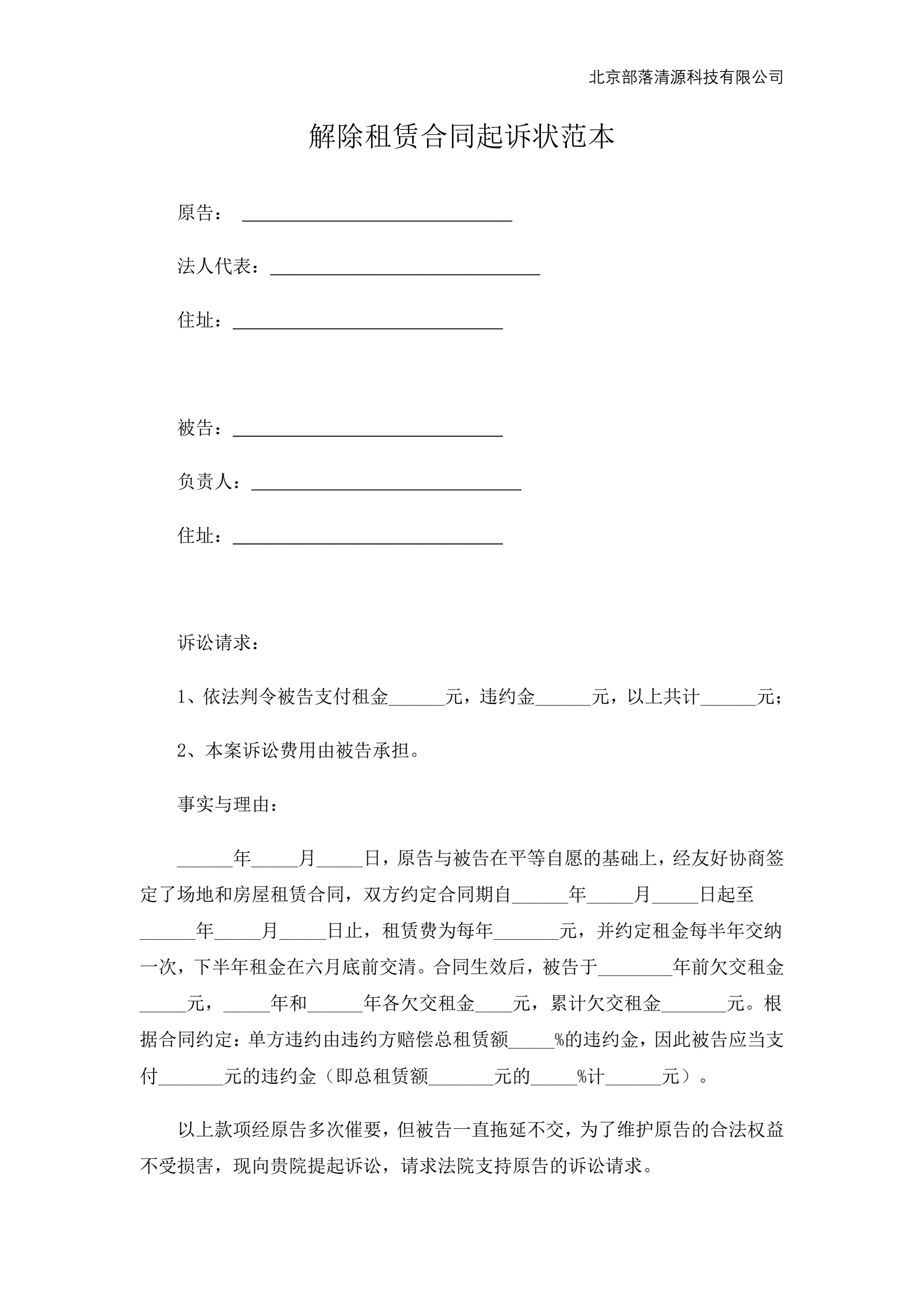解除租赁合同起诉状范本