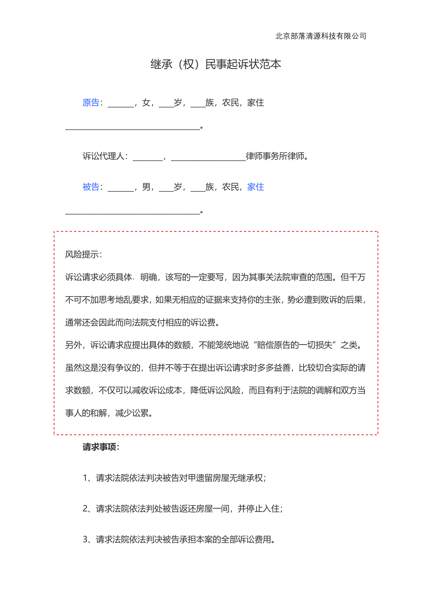继承(权)民事起诉状范本