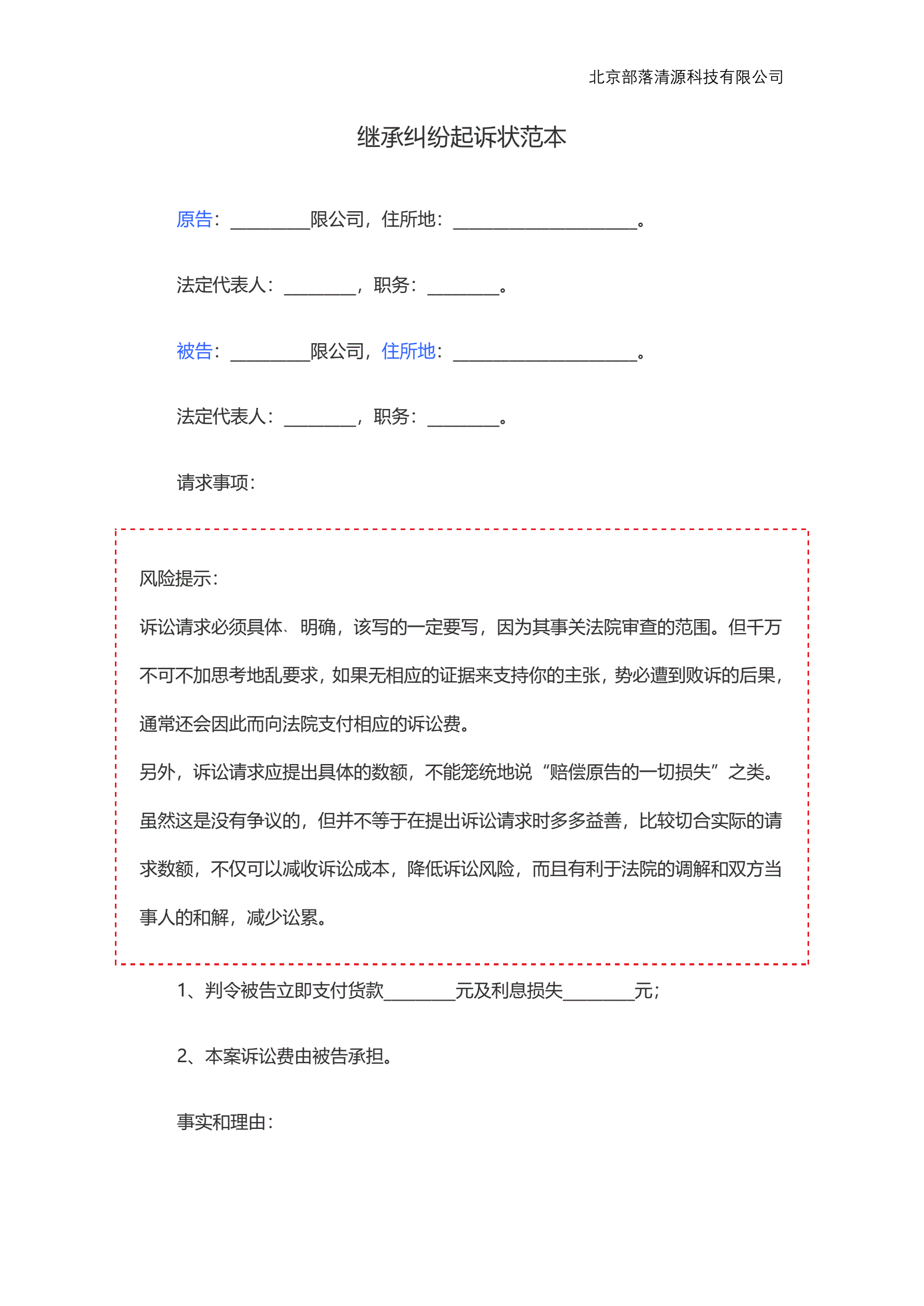 继承纠纷起诉状范本
