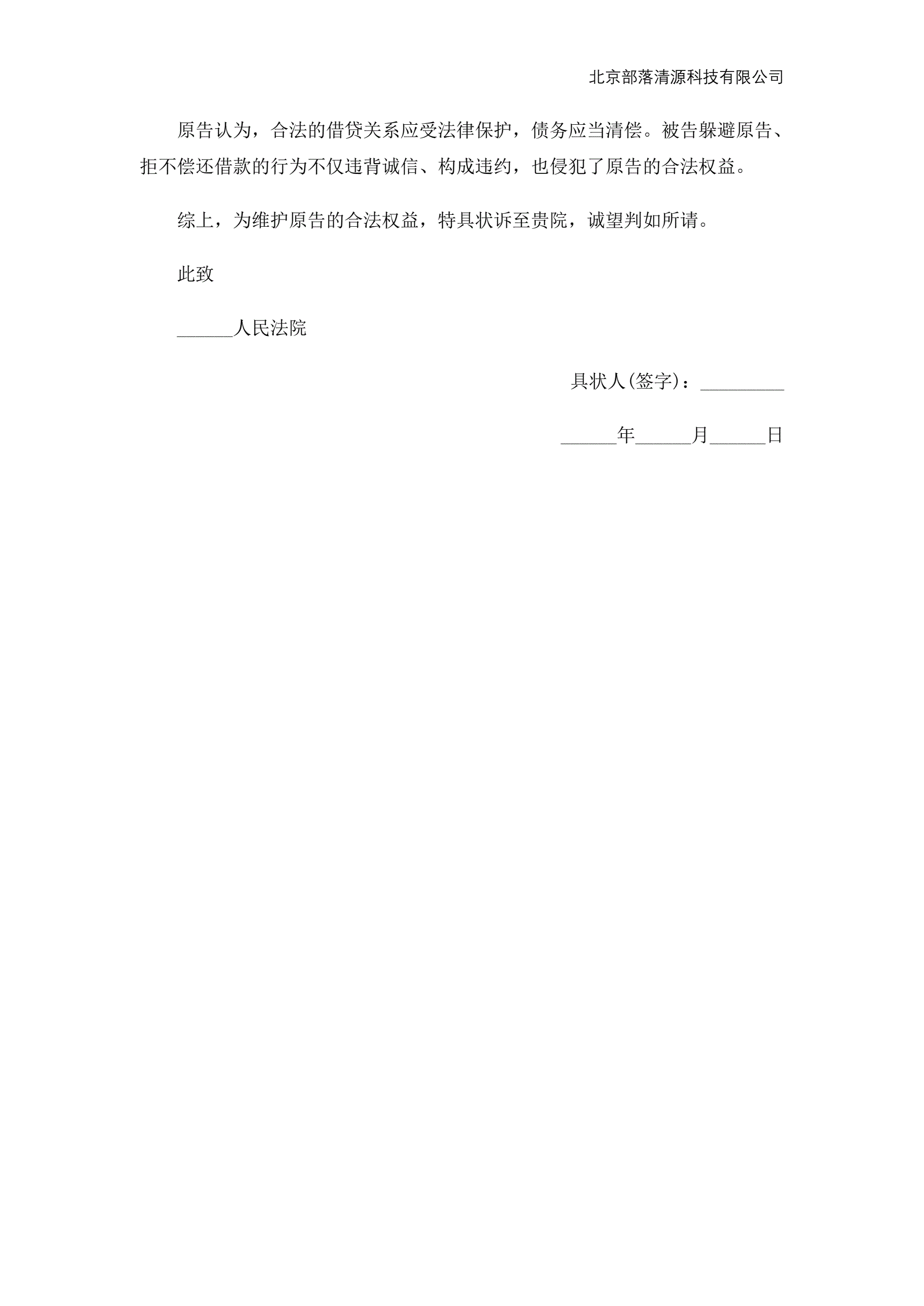 >民间借贷纠纷民事起诉状范本