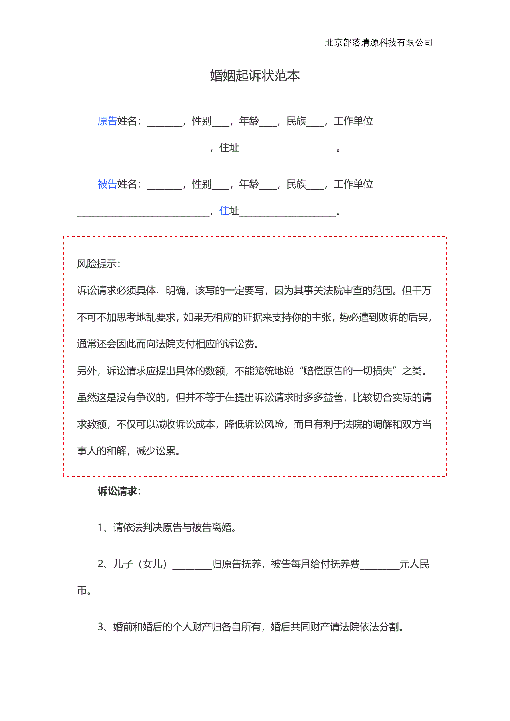 >婚姻起诉状范本