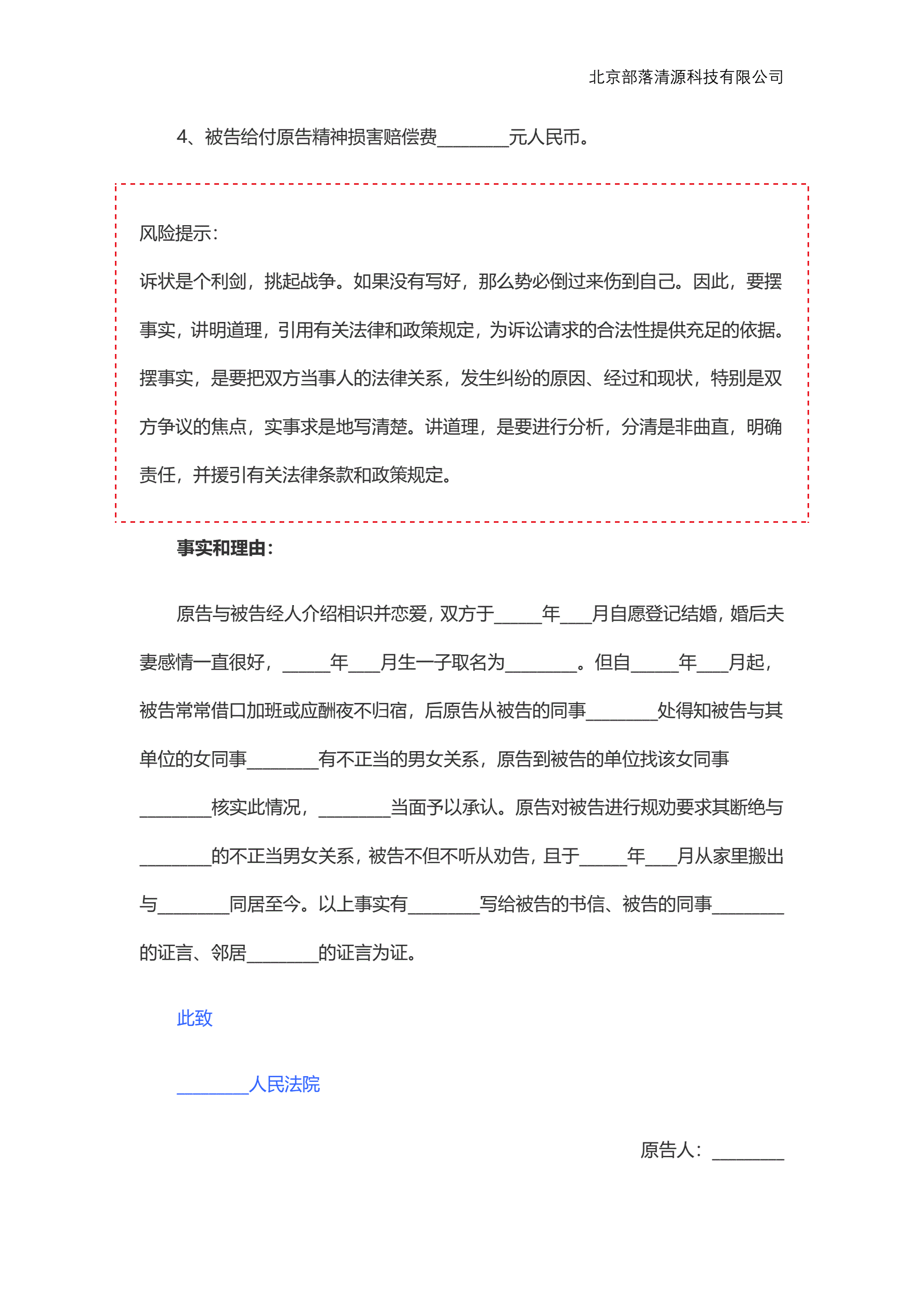 婚姻起诉状范本