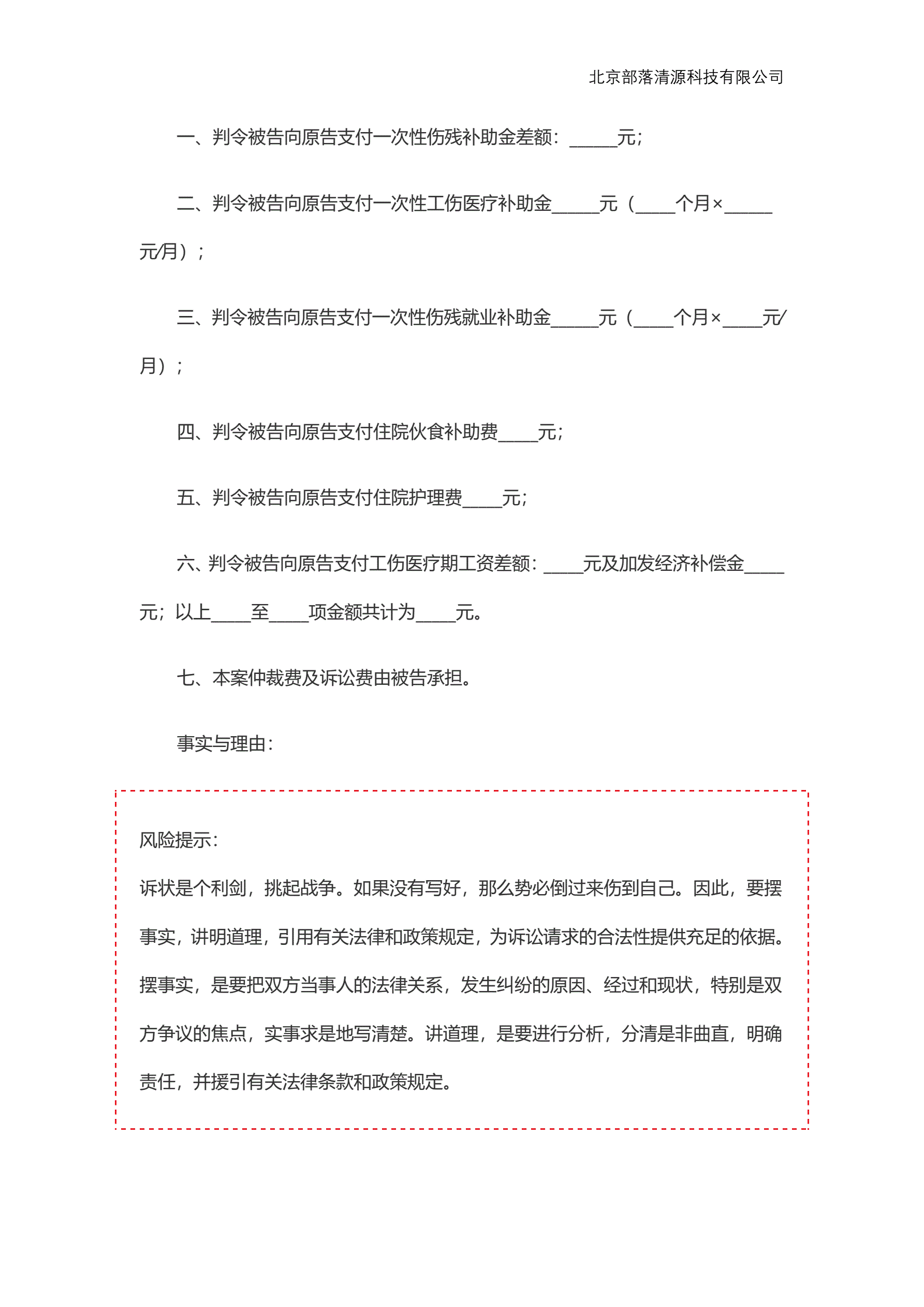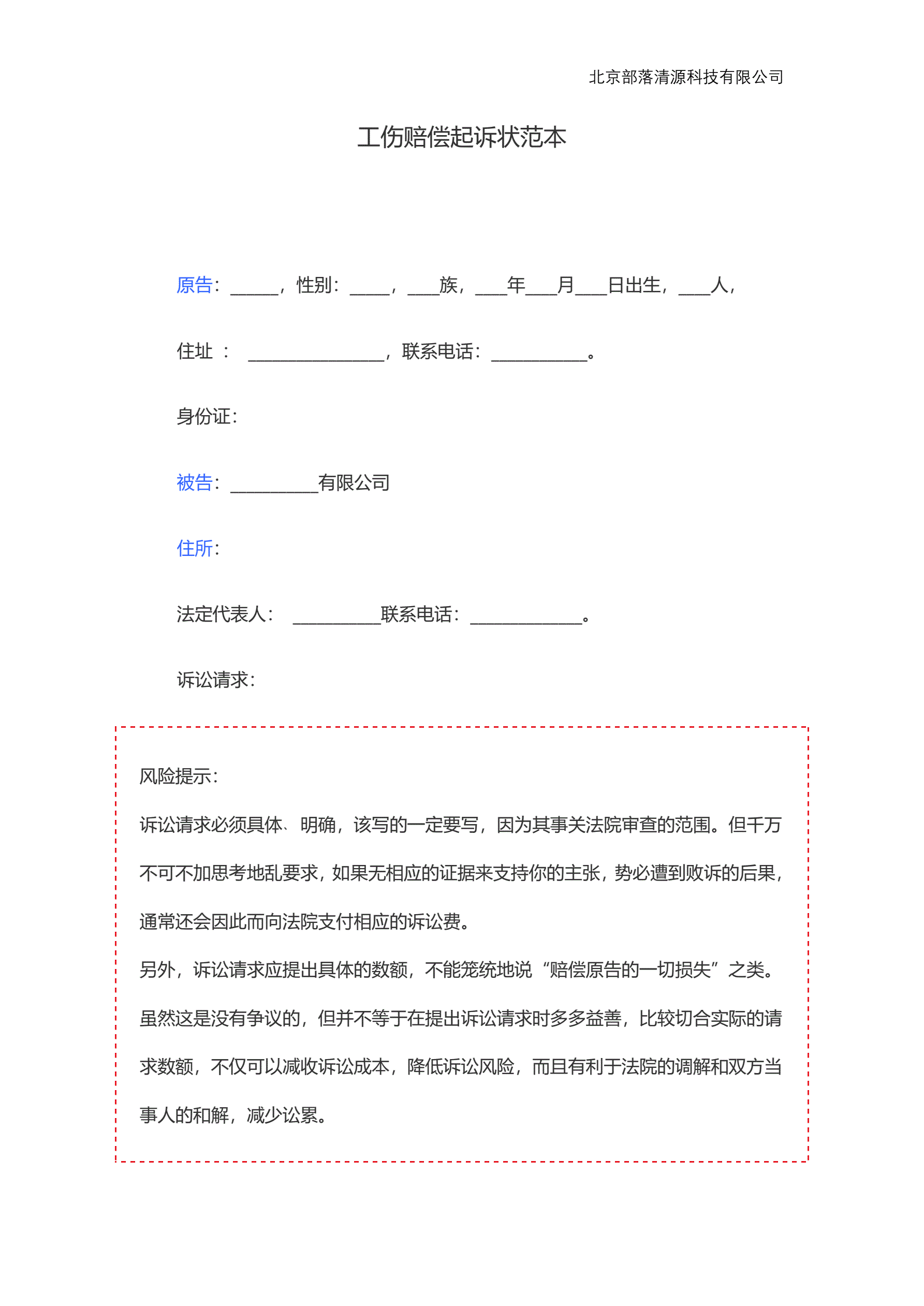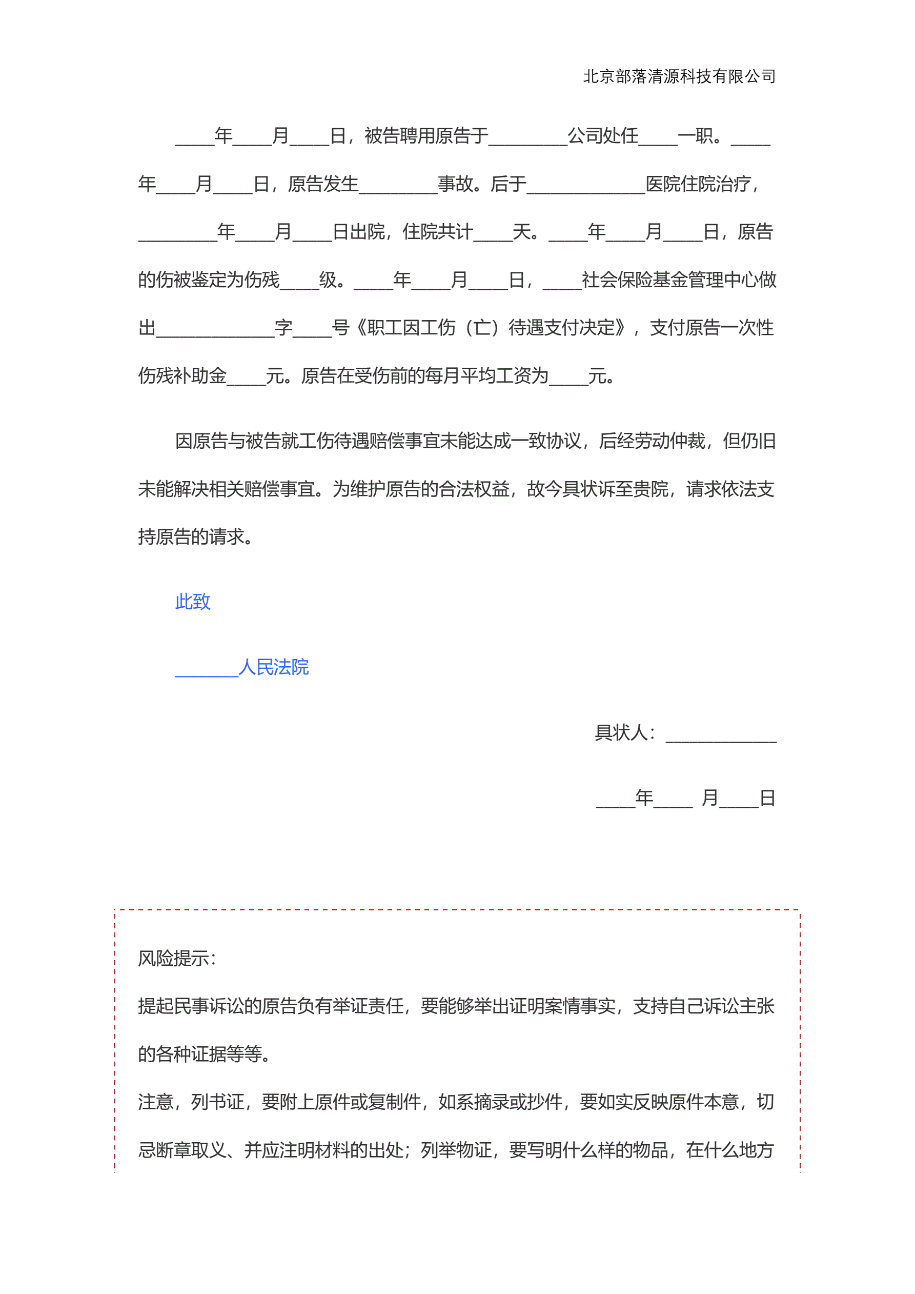 工伤赔偿起诉状范本