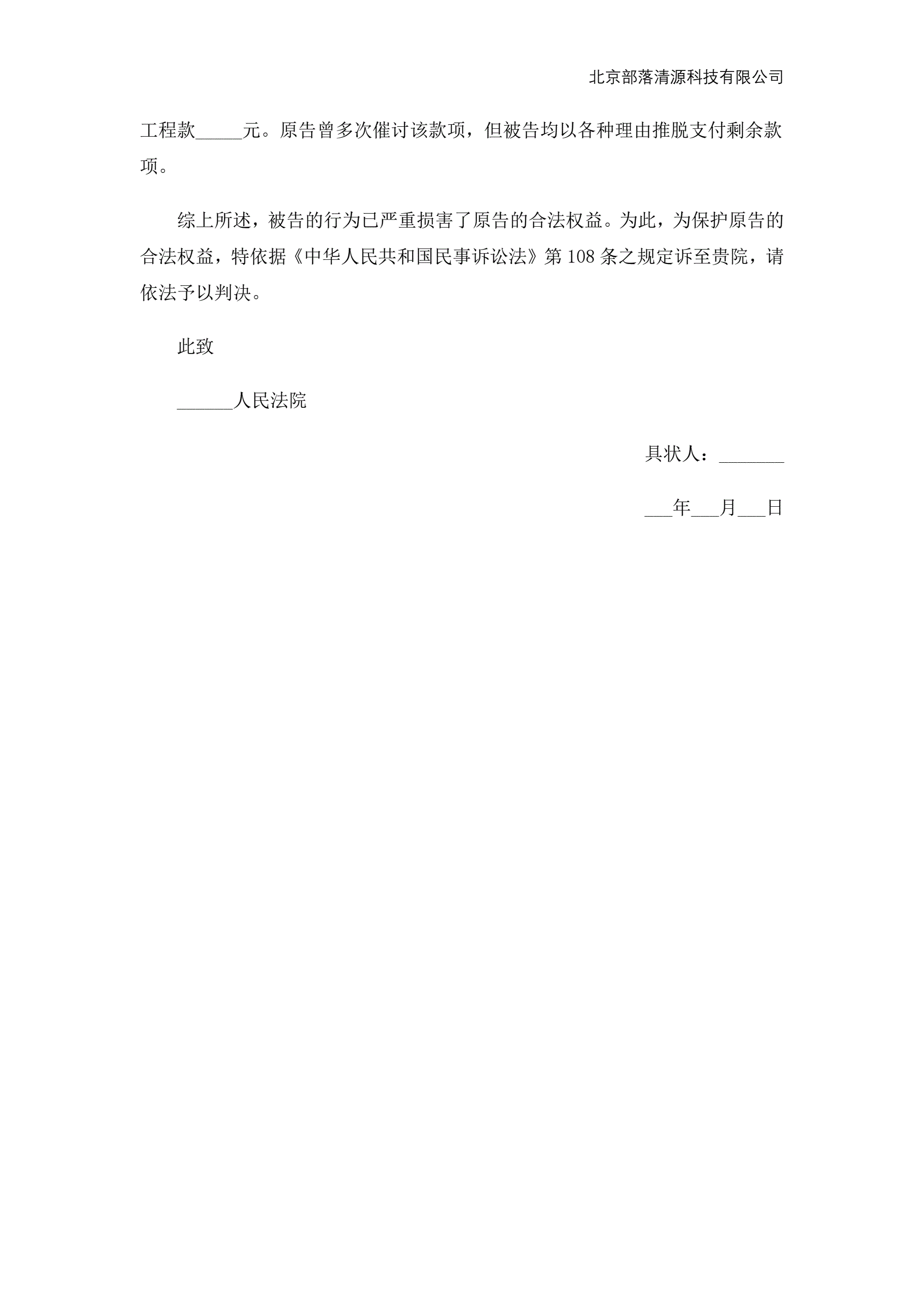 房屋装修纠纷起诉状范本