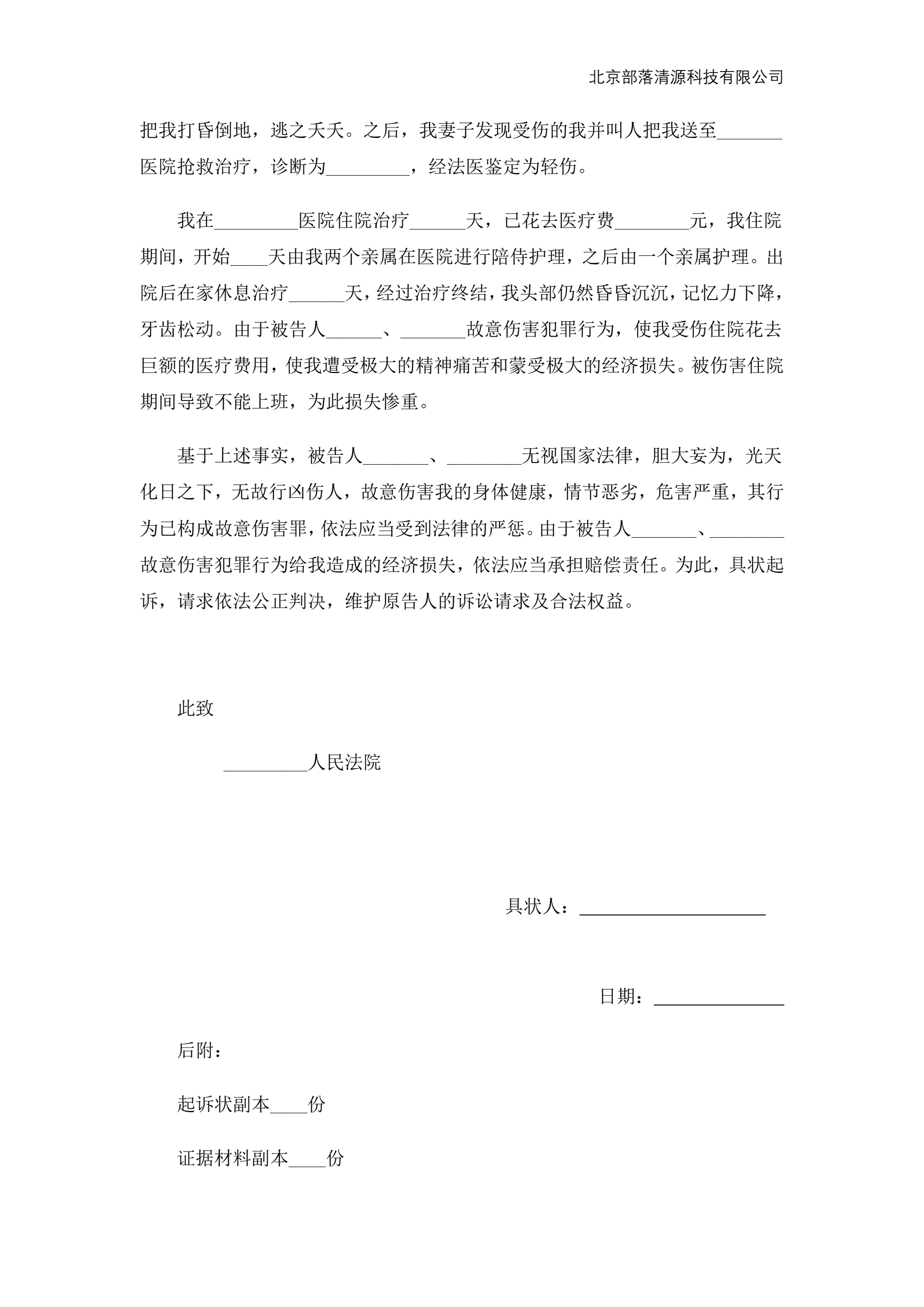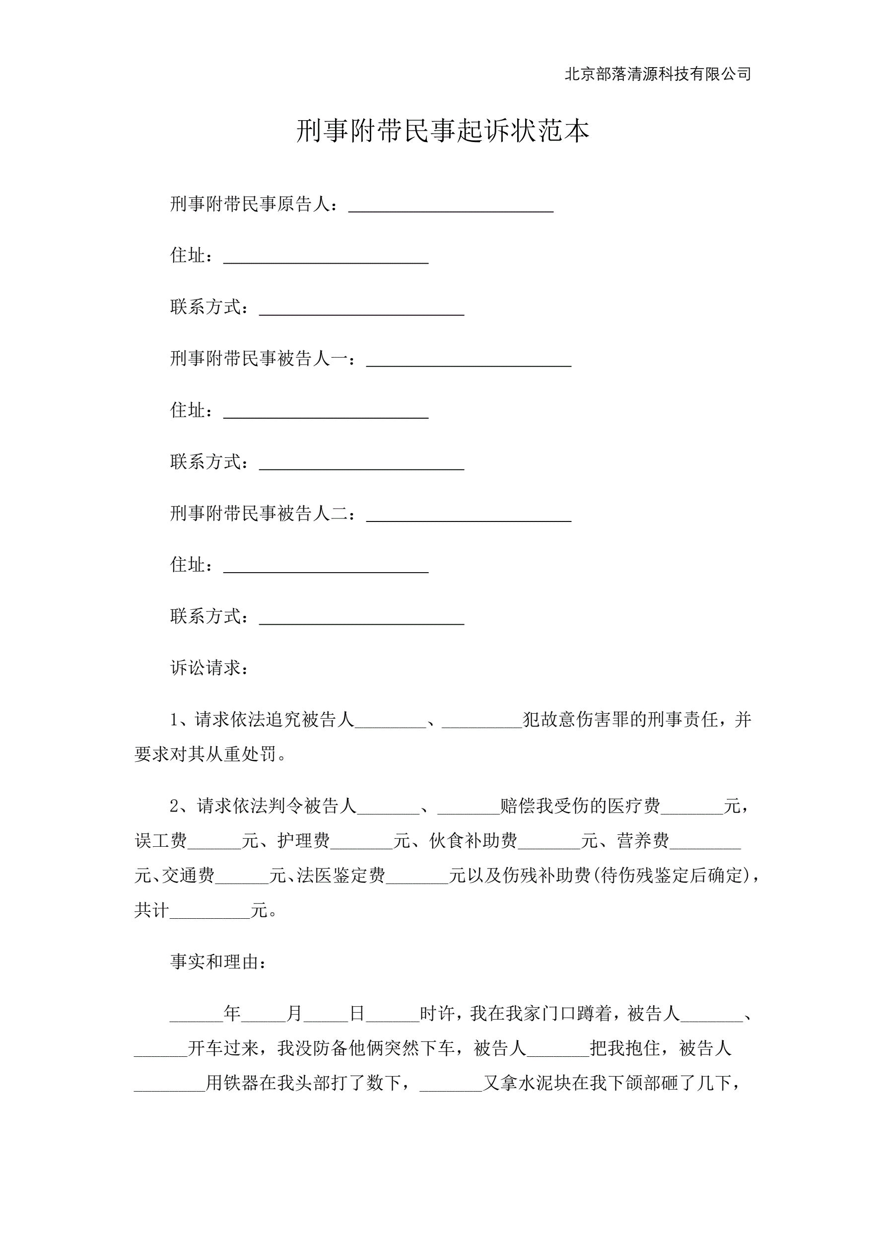 >刑事附带民事起诉状范本