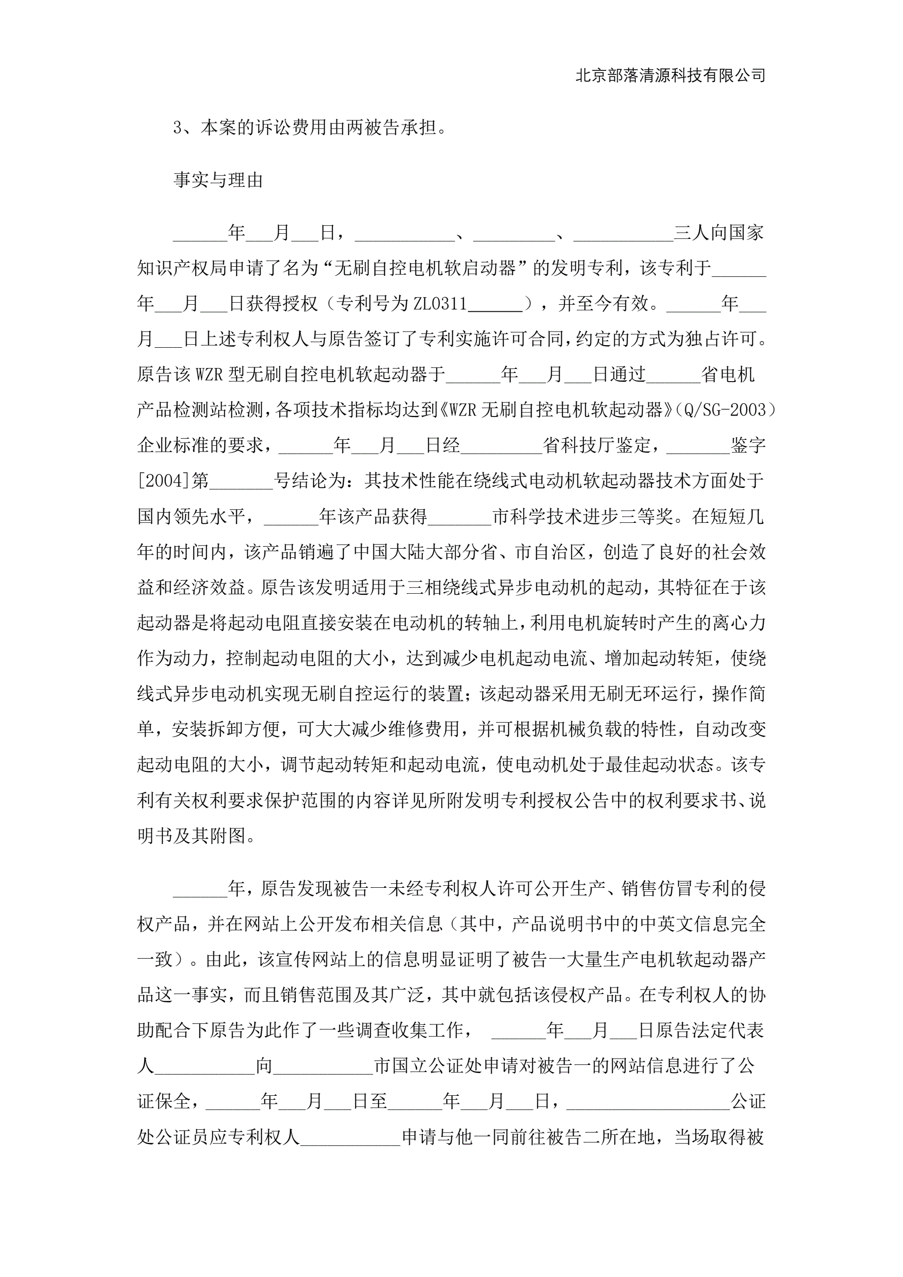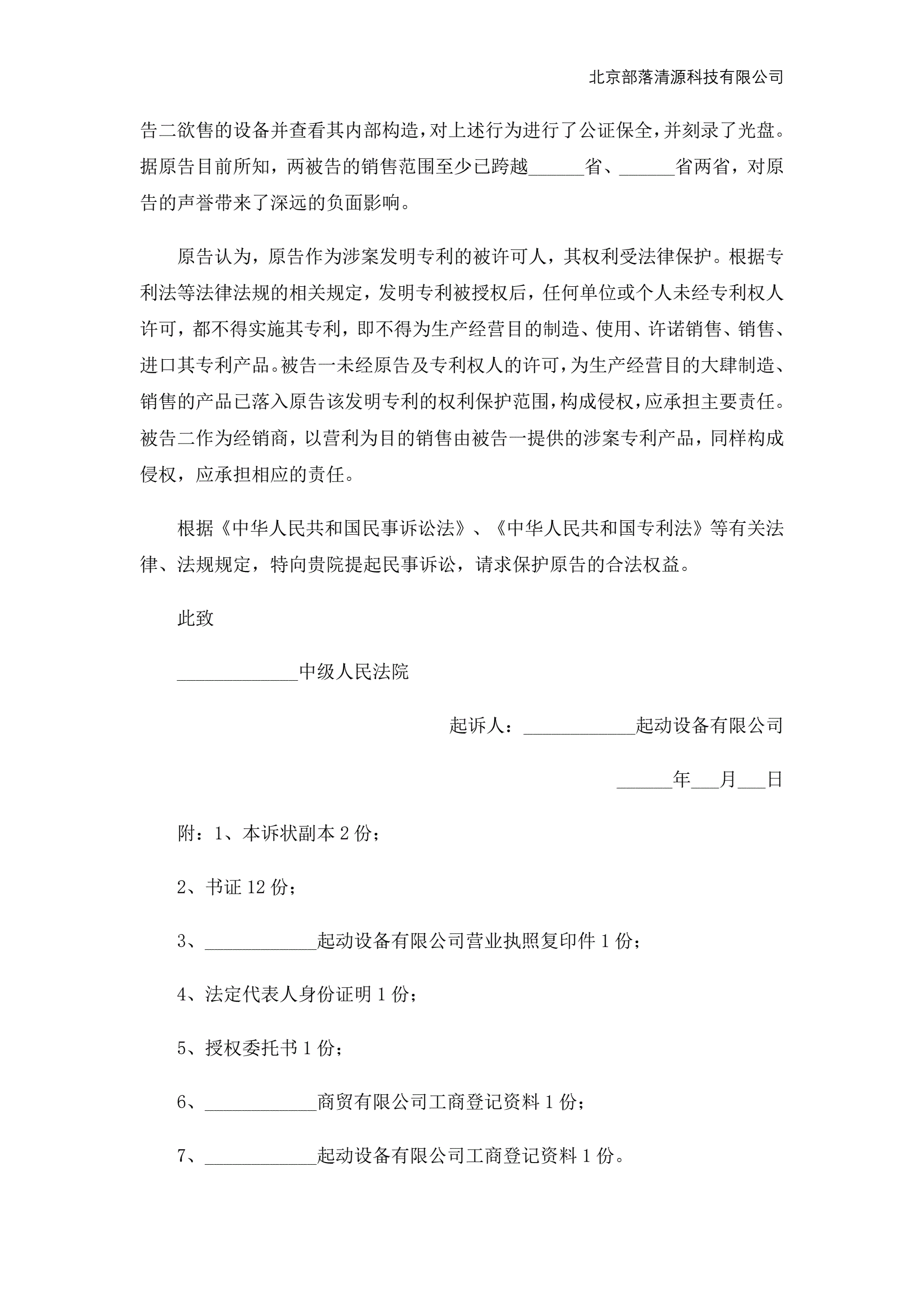 >专利起诉状范本