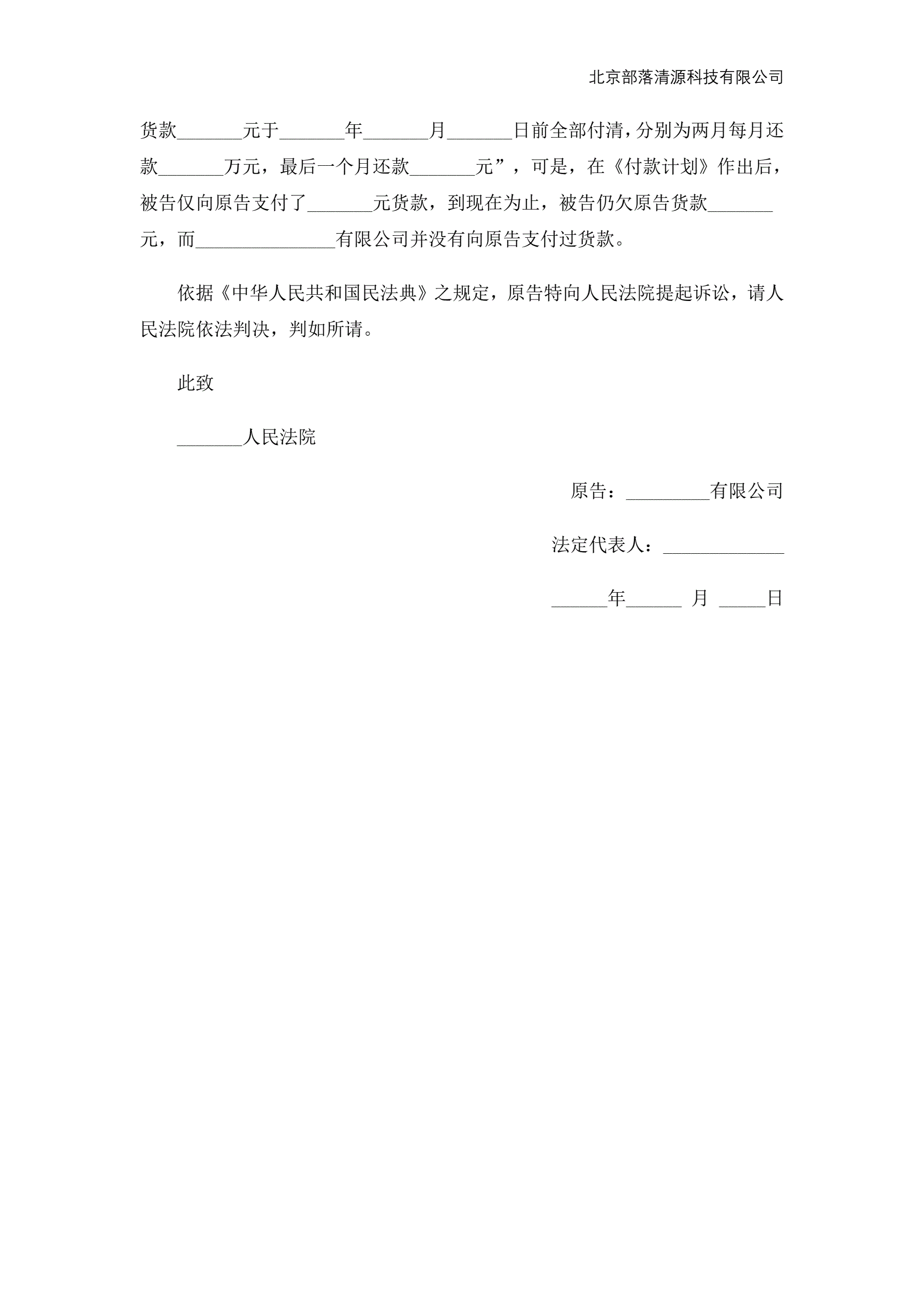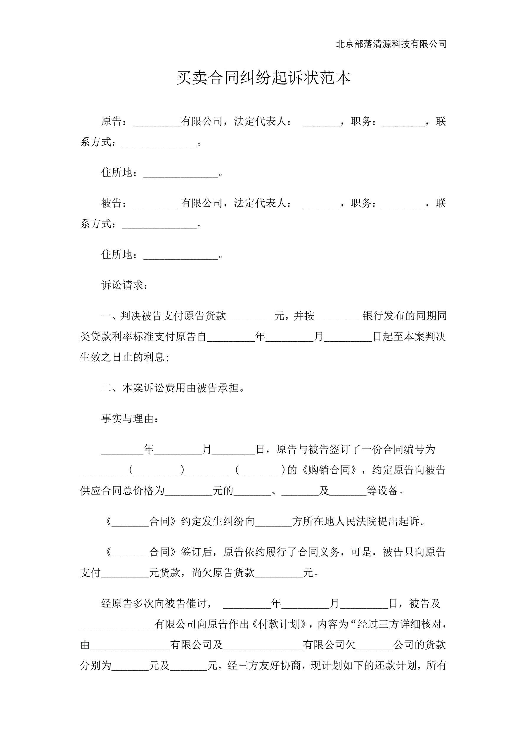 买卖合同纠纷起诉状范本