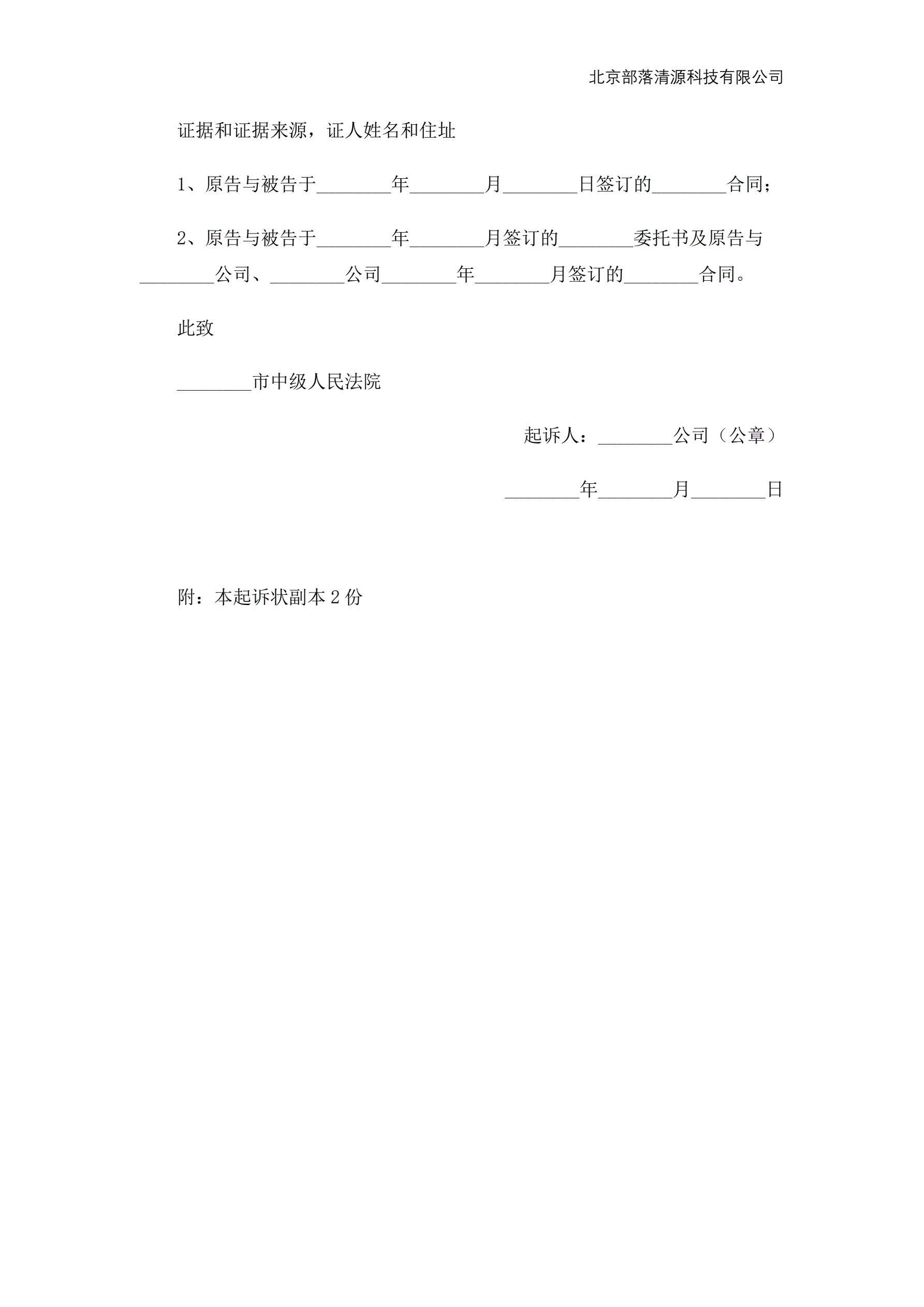 企业民事起诉状范本