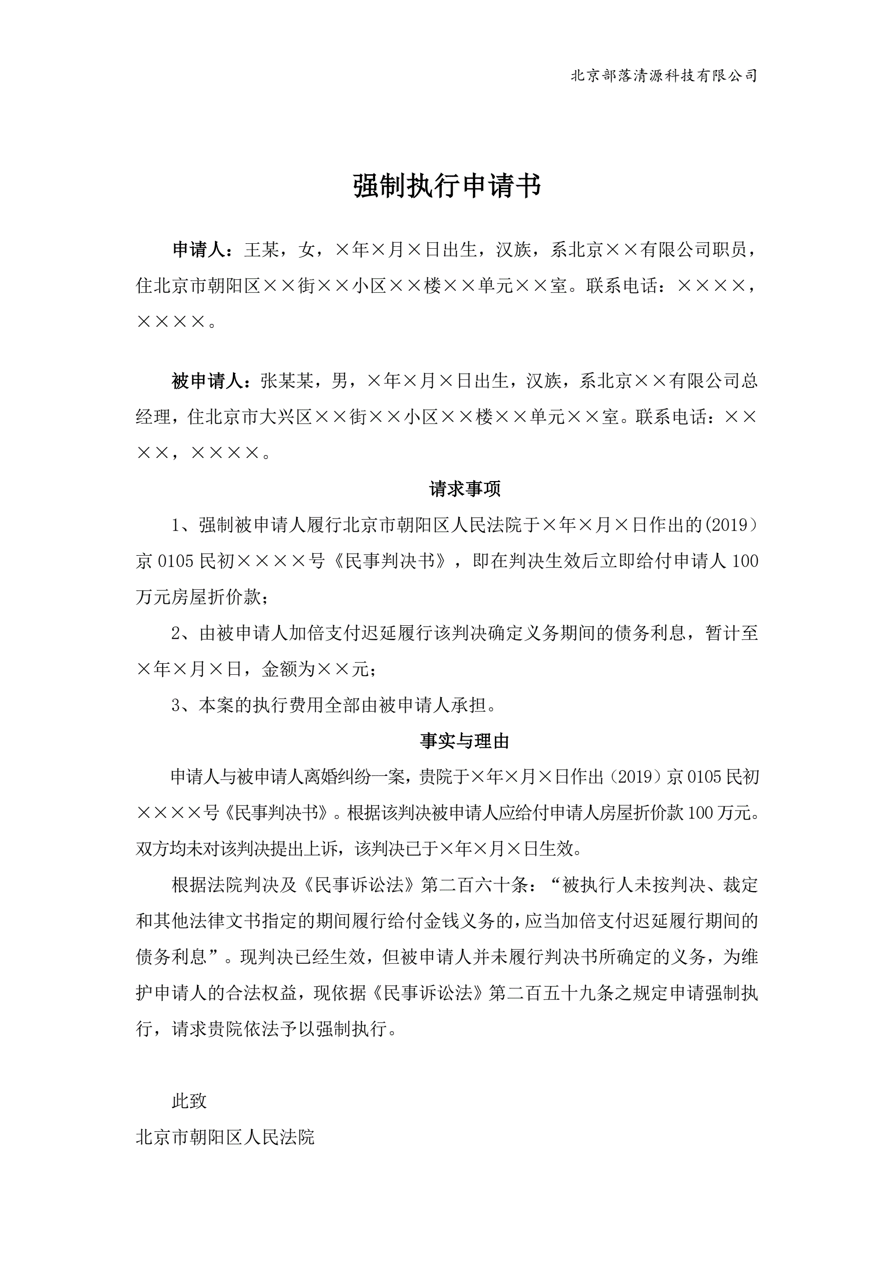 强制执行申请书范本