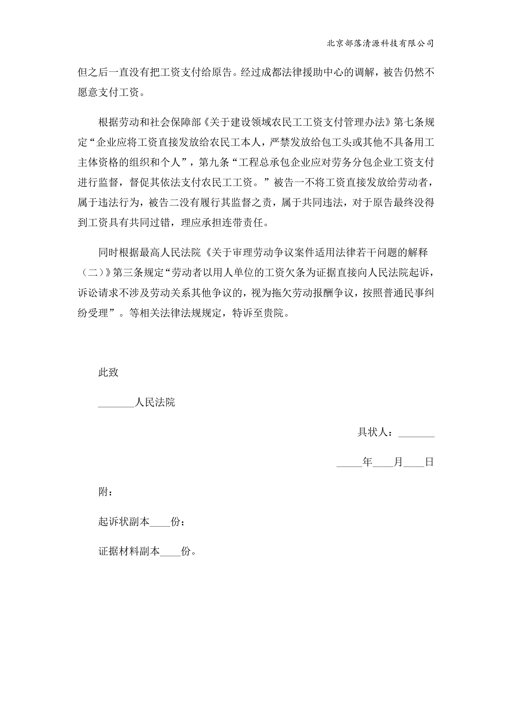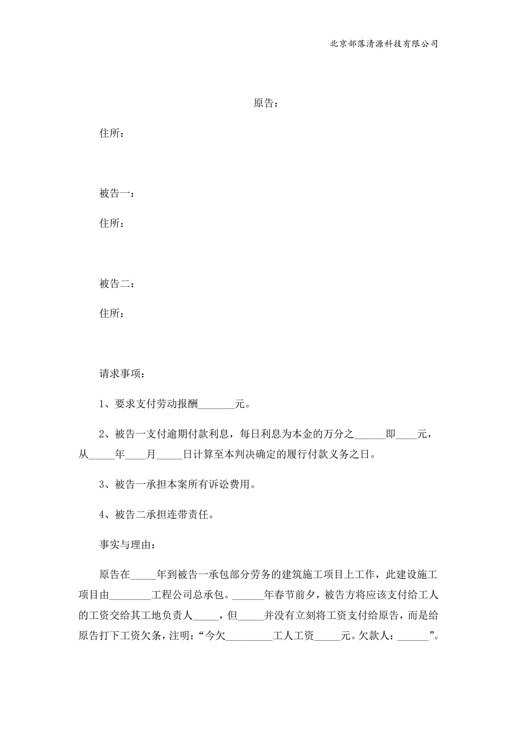 >追索劳动报酬起诉状范本
