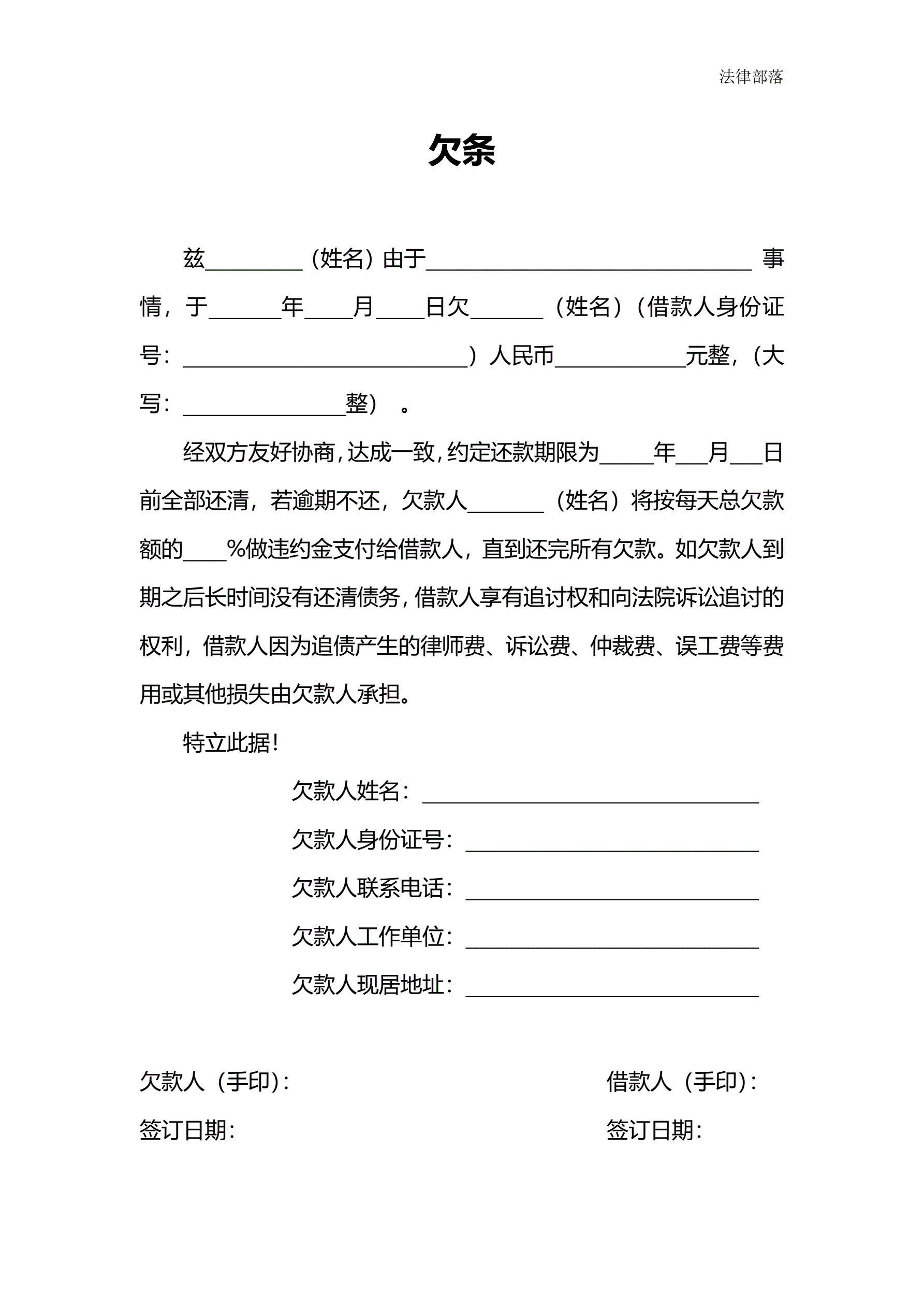 >通用欠条模板