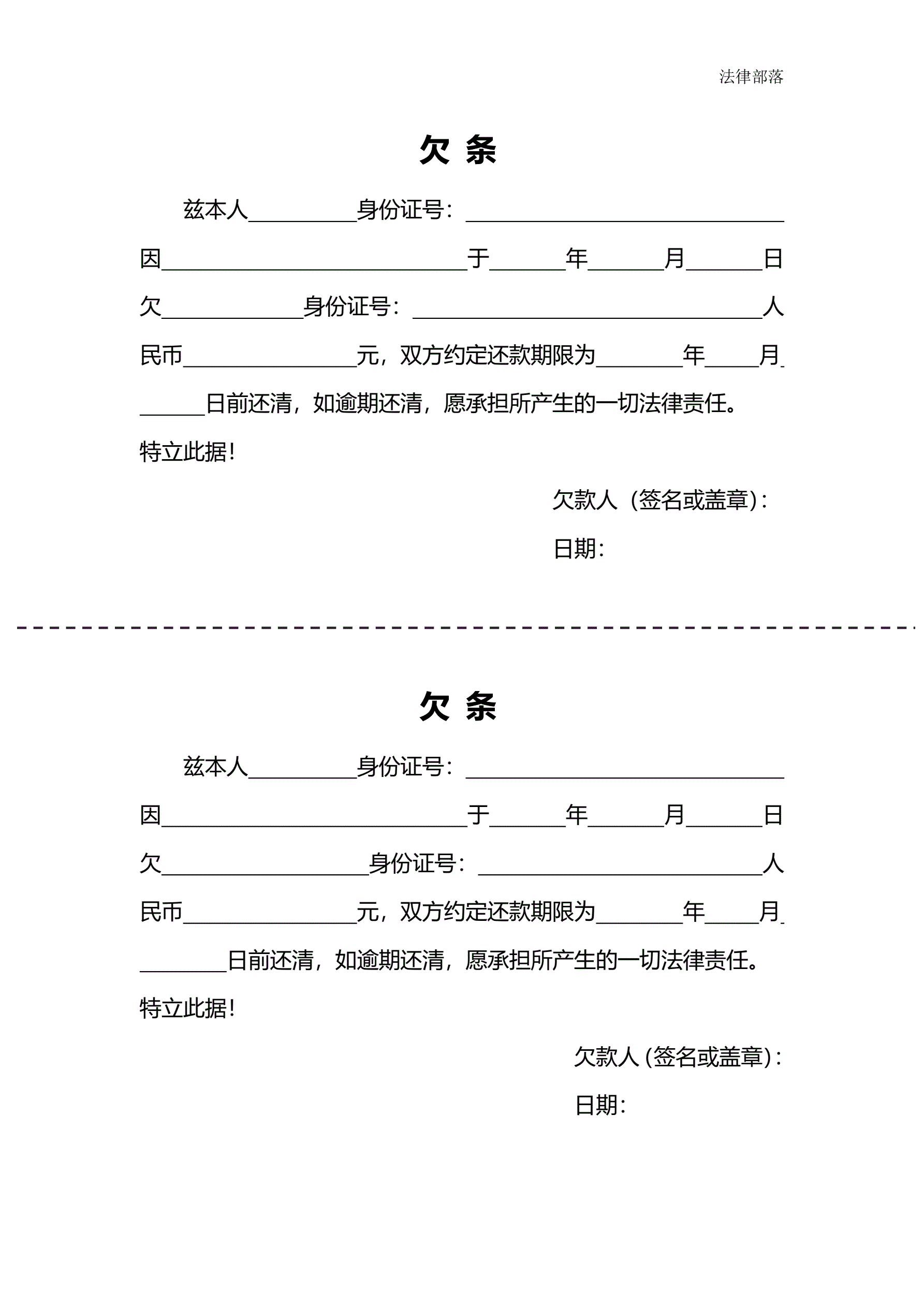 欠条一式两份