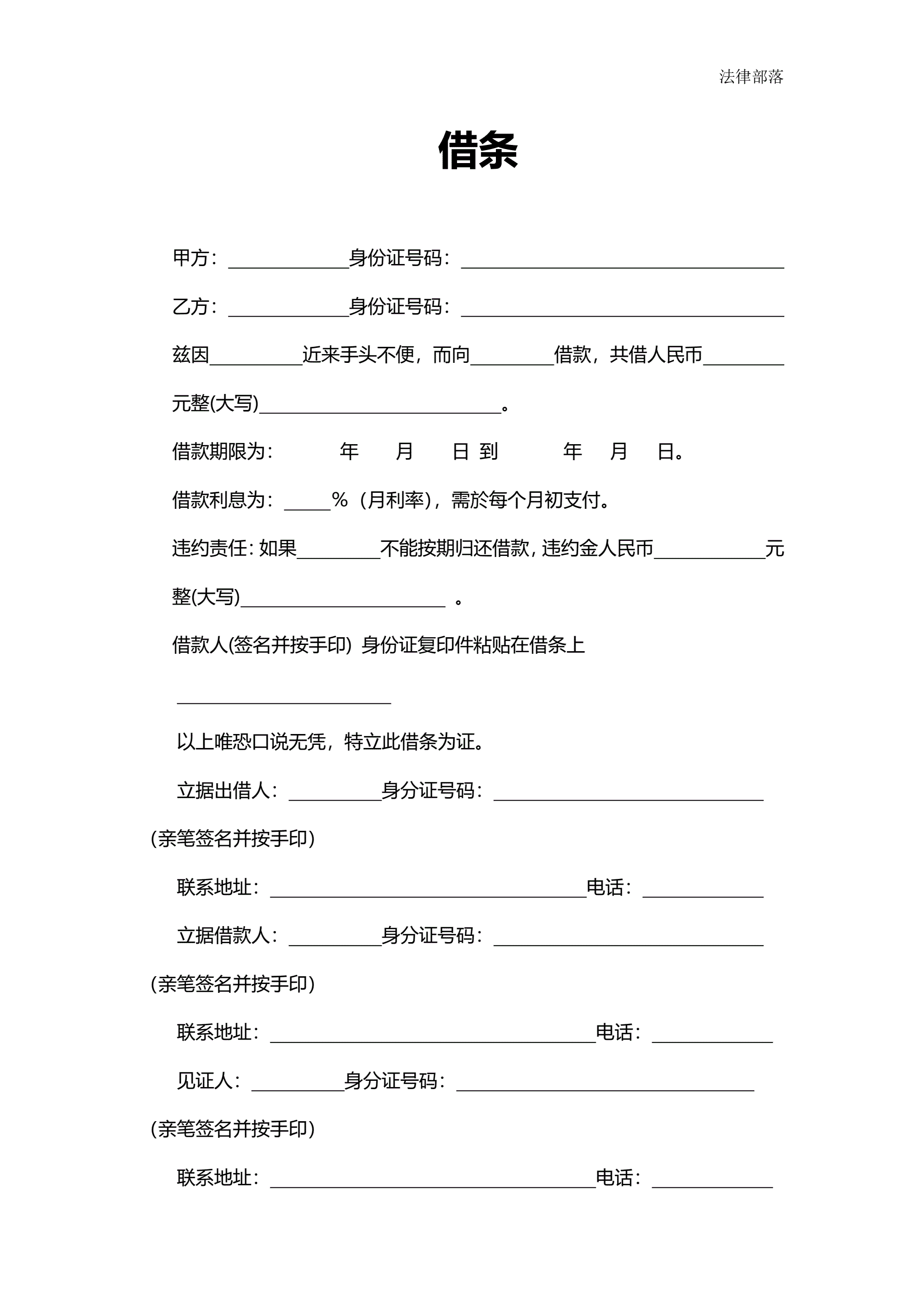>借条(含担保人)通用版
