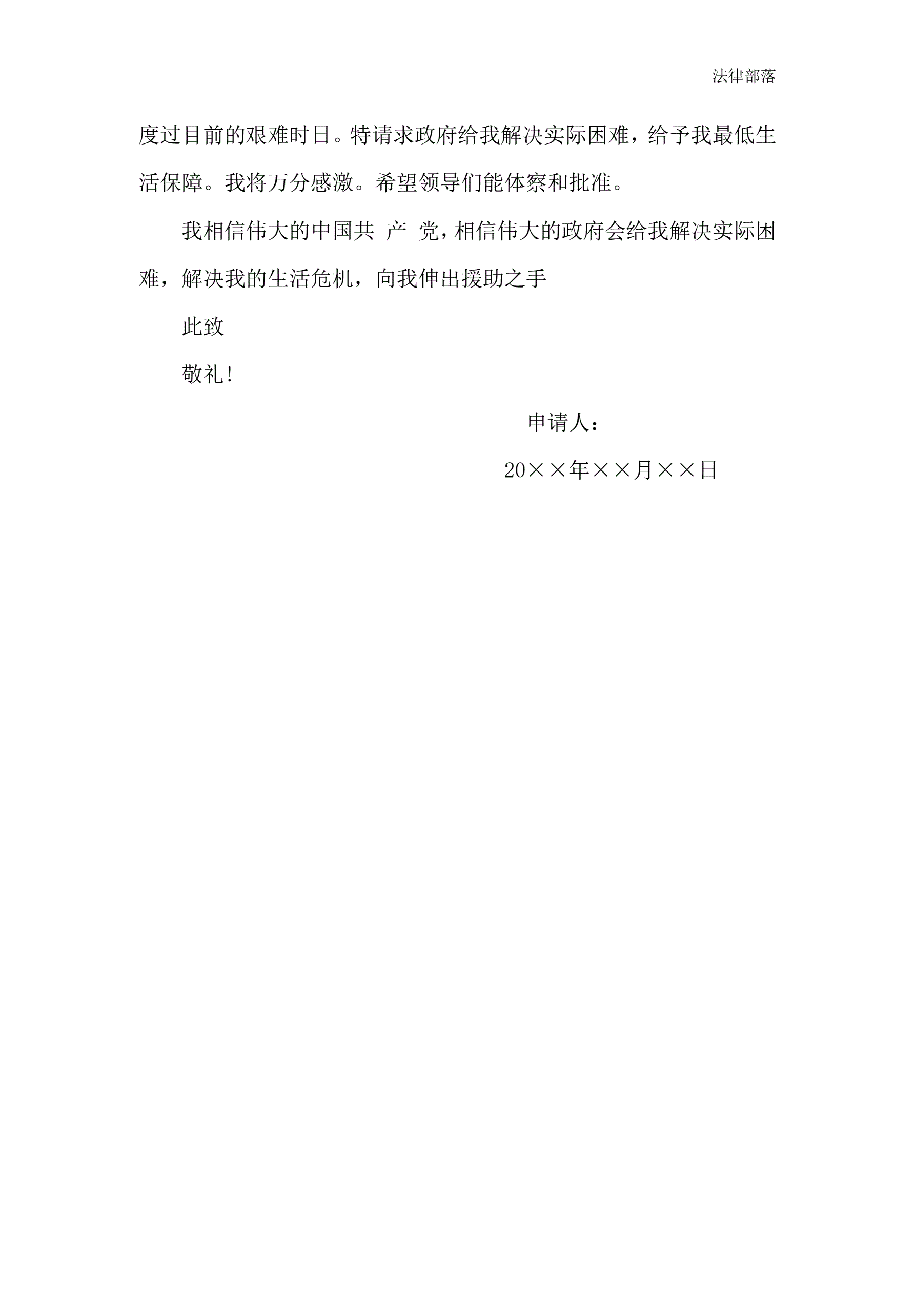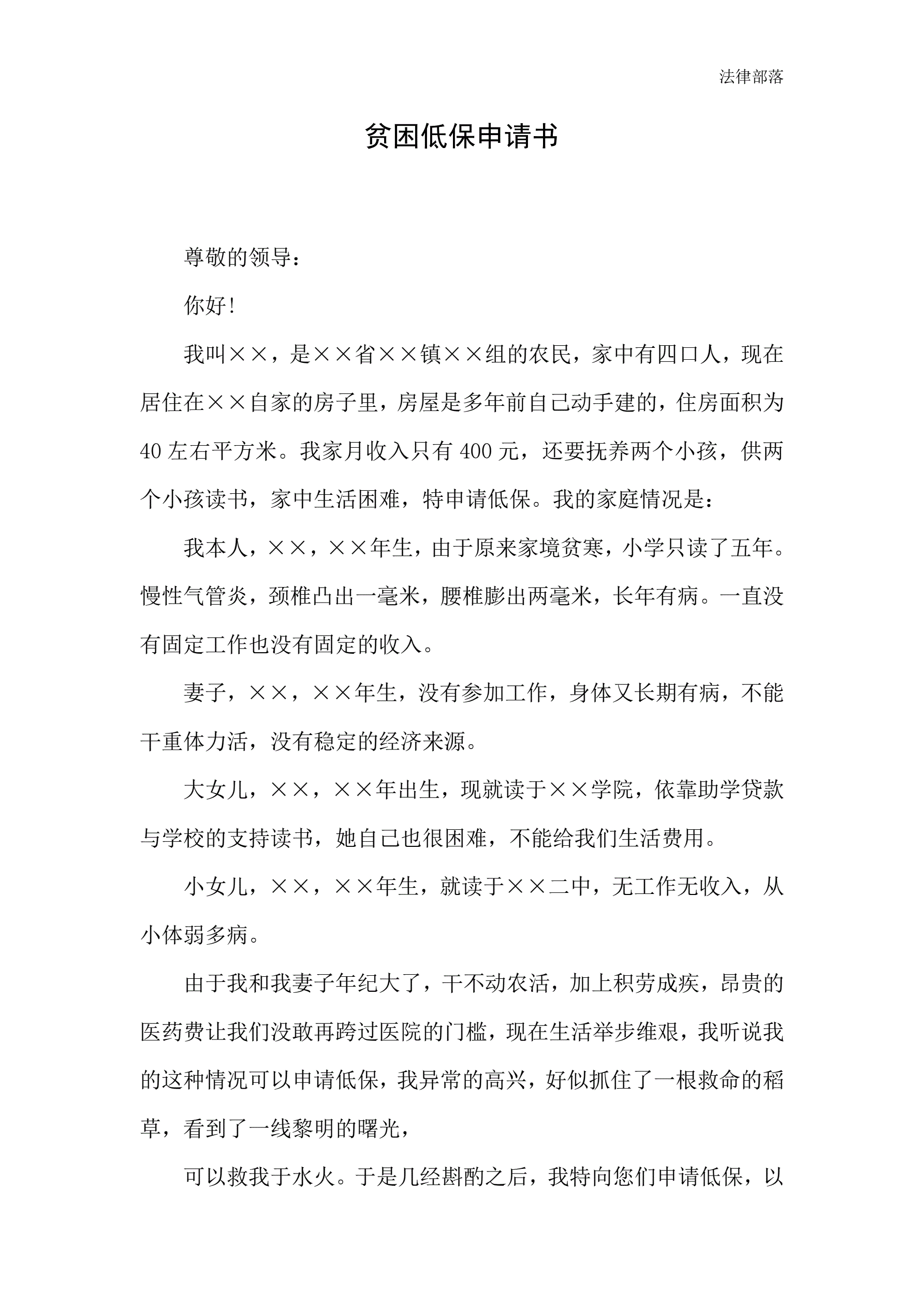 >农民贫困低保申请书1000字范文