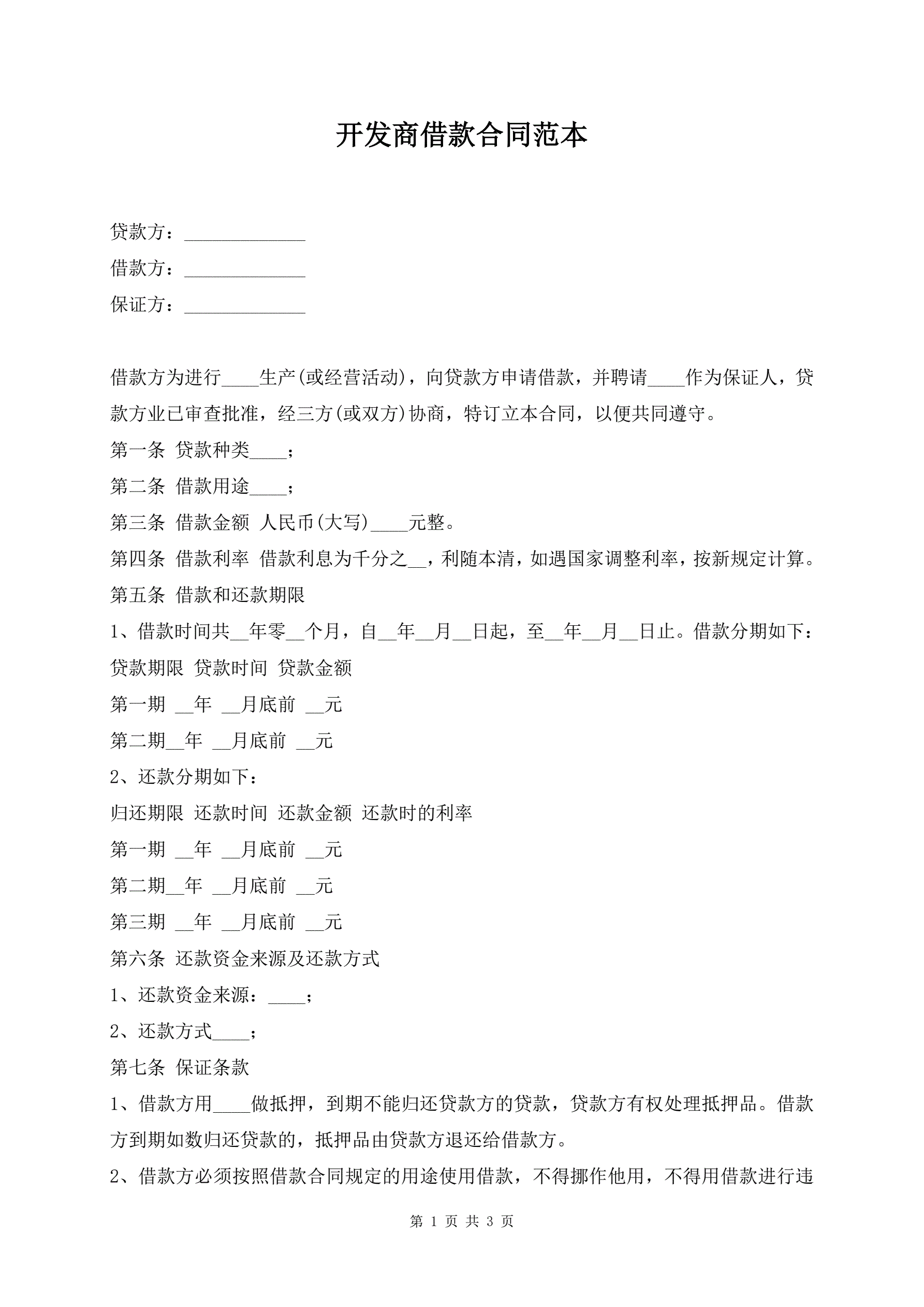 开发商借款合同范本