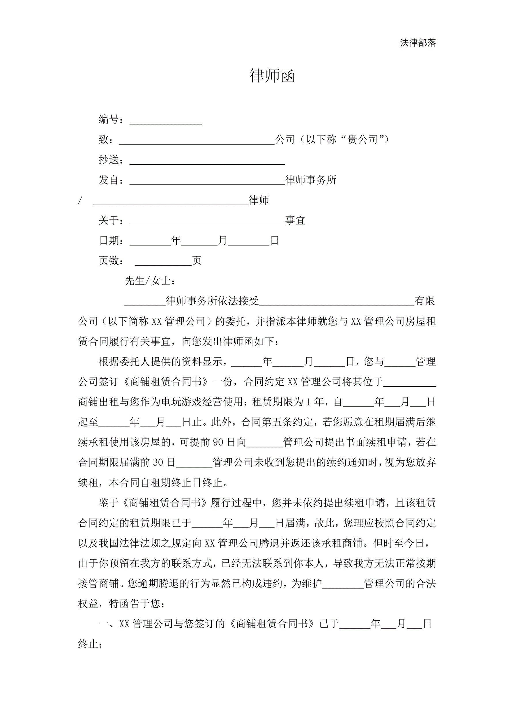 律师函:房屋租赁类