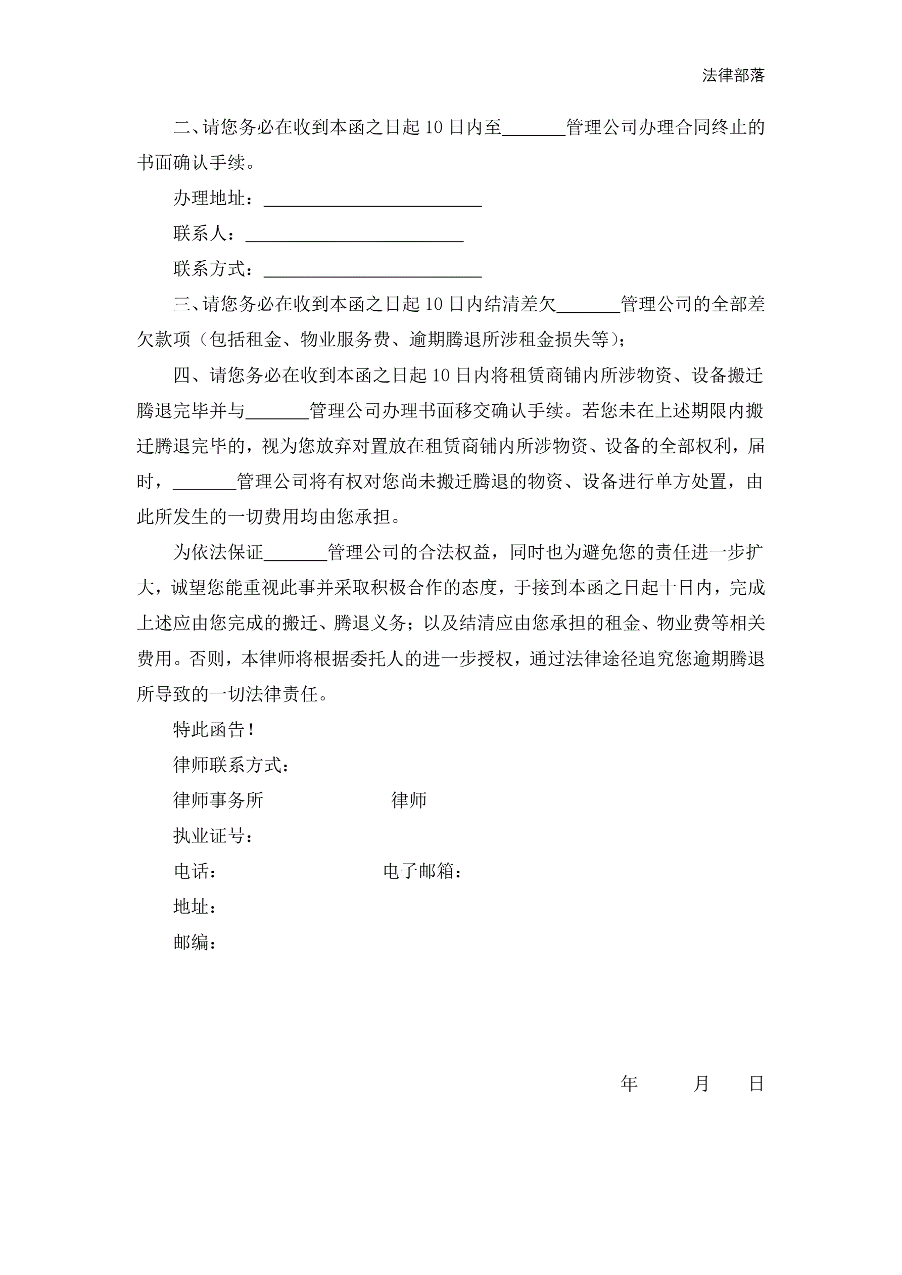 >律师函:房屋租赁类