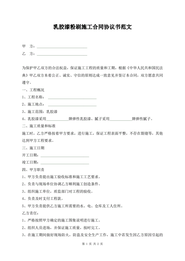 乳胶漆粉刷施工合同协议书范文