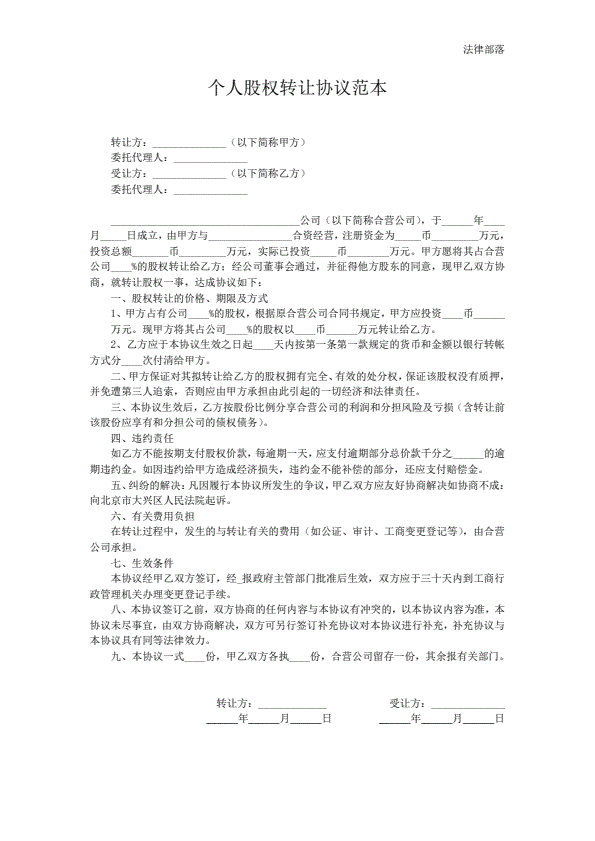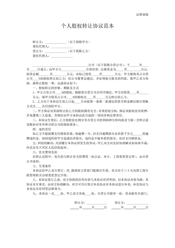 个人股权转让协议