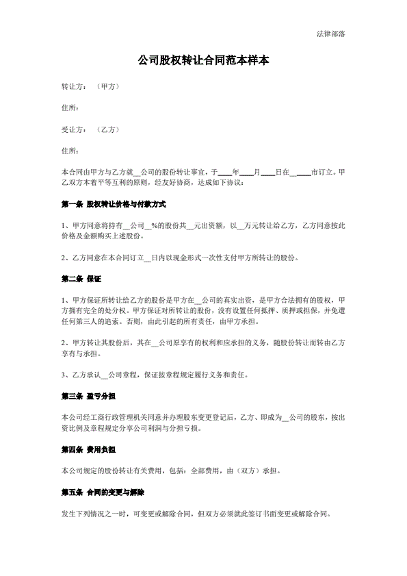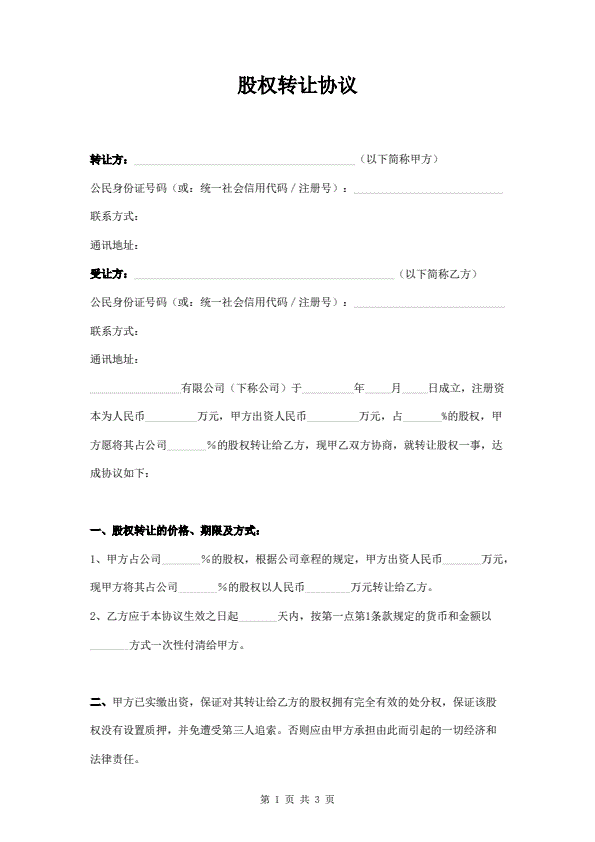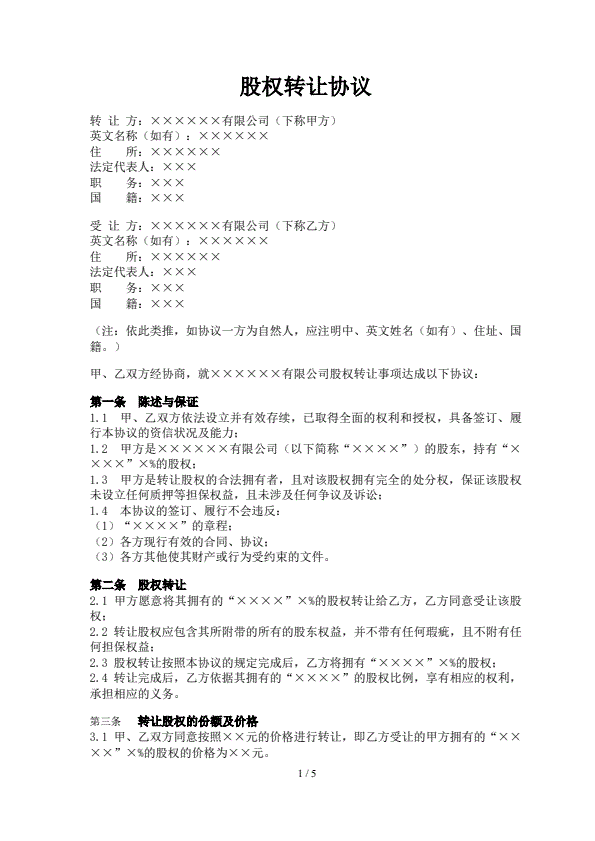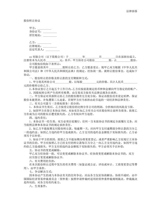 通用股份转让合同