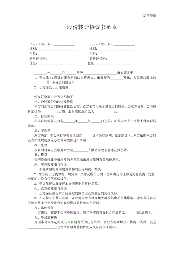 股份转让协议书范本