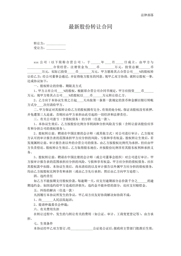 最新股份转让合同