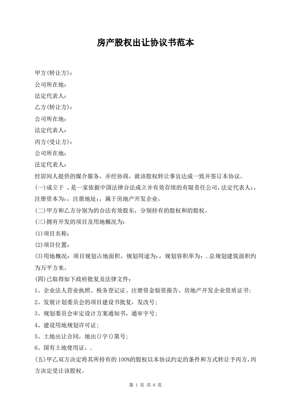房产股权出让协议书范本
