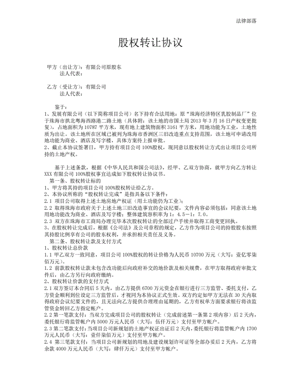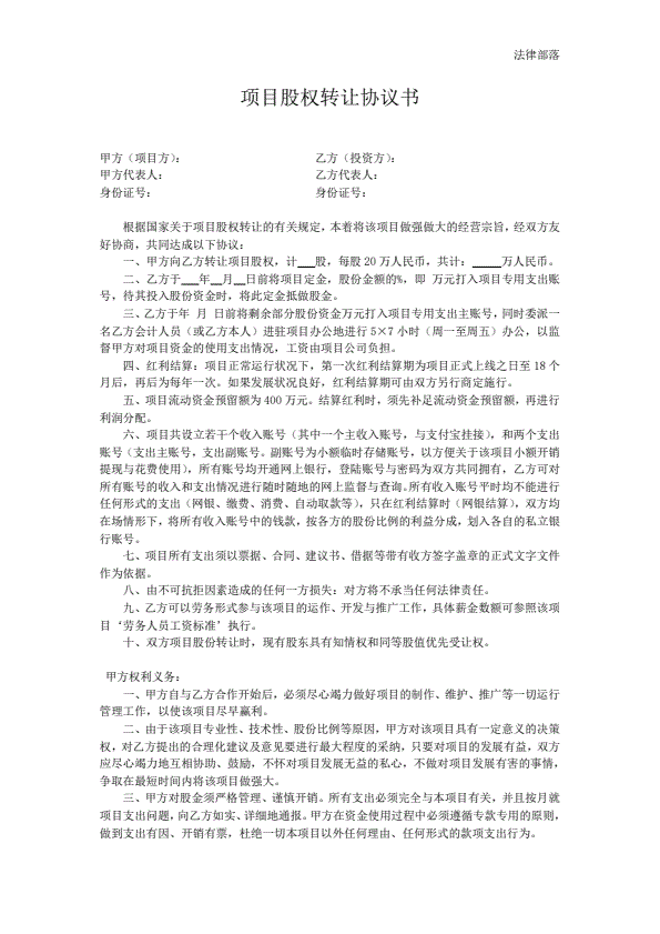 项目股权转让合同