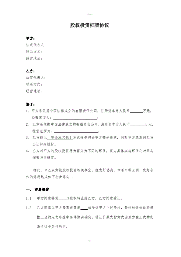 股权投资框架协议(指导版)