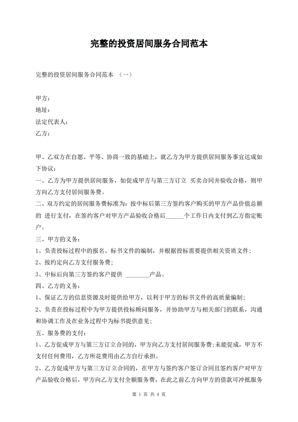 完整的投资居间服务合同范本